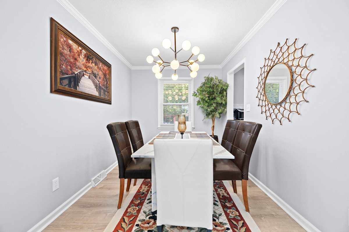 Welkom in onze schattige, efficiënte, onlangs gerenoveerde woning met 2 slaapkamers en een omheinde tuin voor je bontbaby. Dit is ons thuis weg van huis. Wij wensen je een verblijf met speciale kenmerken, zoals een geweldige overdekte patio voor het spelen van oversized Jenga, cornhole of het grillen van een KC BBQ! Centraal gelegen naast de I-35 voor gemakkelijk dineren, winkelen en entertainment in Johnson County en Greater Kansas City. Alle nieuwe meubels en volledig gevuld. Kingsize bed en dagbedovertrekken van een tweeling of een andere koning!