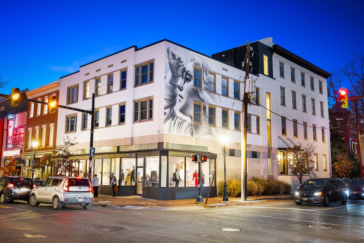 Stappen naar King St: open haard + kamerverduisterende gordijnen + keuken met alle voorzieningen! Of je nu voor zaken of voor een weekendje weg bent, je zult blij zijn te weten dat je in het hart van Old Town Alexandria, VA verblijft. Slechts een paar stappen naar de topattracties. Geniet van de beste koffie- en ijssalons van de stad, bezoek lokale kunstenaars, unieke kleine bedrijven, 5 ★ restaurants en creatief samengestelde bars. En ontspan vervolgens in een op maat ontworpen modern luxe appartement, gevulde keuken, een oceanische douche-ervaring.