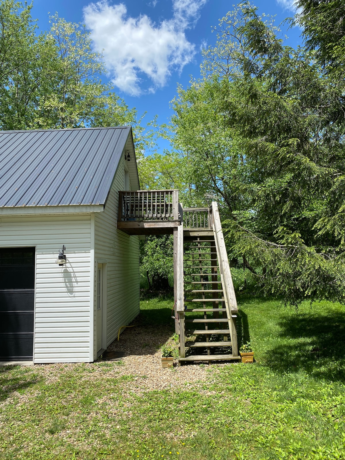 We look forward to welcoming you to the secluded beauty of our space, designed and built by my husband on our 20 acres of wooded property in the rolling hills of Central Ohio. A floor-to-ceiling glass front provides you with a view of fields green in summertime and ripe with goldenrod in the fall, four outdoor deck spaces invite you to relax in the beauty of nature, and a second story loft suite with a soaking tub are ready to provide you with rest and refreshment.