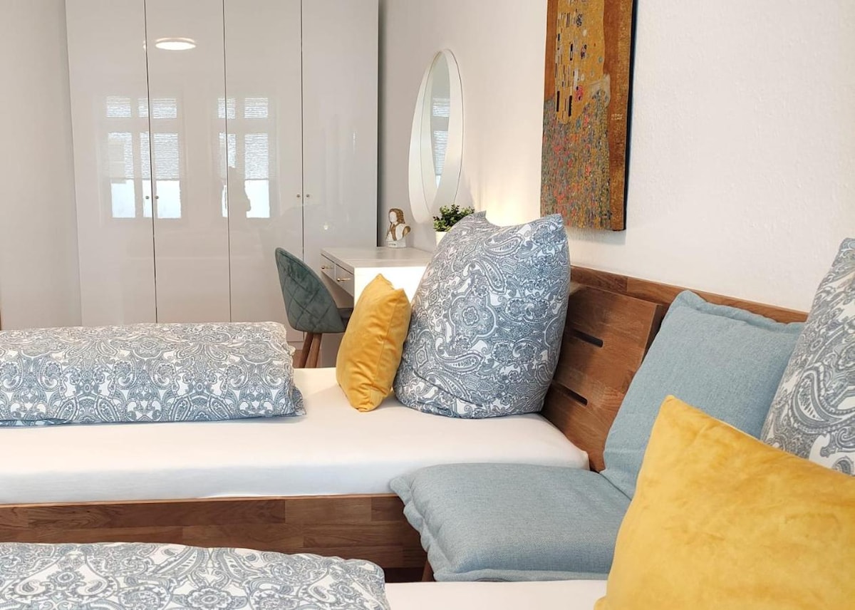 Ongeveer 40m ², schoon en licht appartement met kitchenette, woonkamer en aparte slaapruimte. Zeer mooie, lichte badkamer met douche en toilet en geïntegreerde 2-persoons sauna (Klafs). Ideaal om te ontspannen na wandelingen in het koude seizoen. Het appartement bevindt zich op de derde verdieping en heeft een eigen aparte ingang. De verhuurders wonen in hetzelfde huis. Het appartement heeft een afgesloten parkeerplaats. Fietsen kunnen veilig in de tuin worden geparkeerd. Modieuze omgeving.