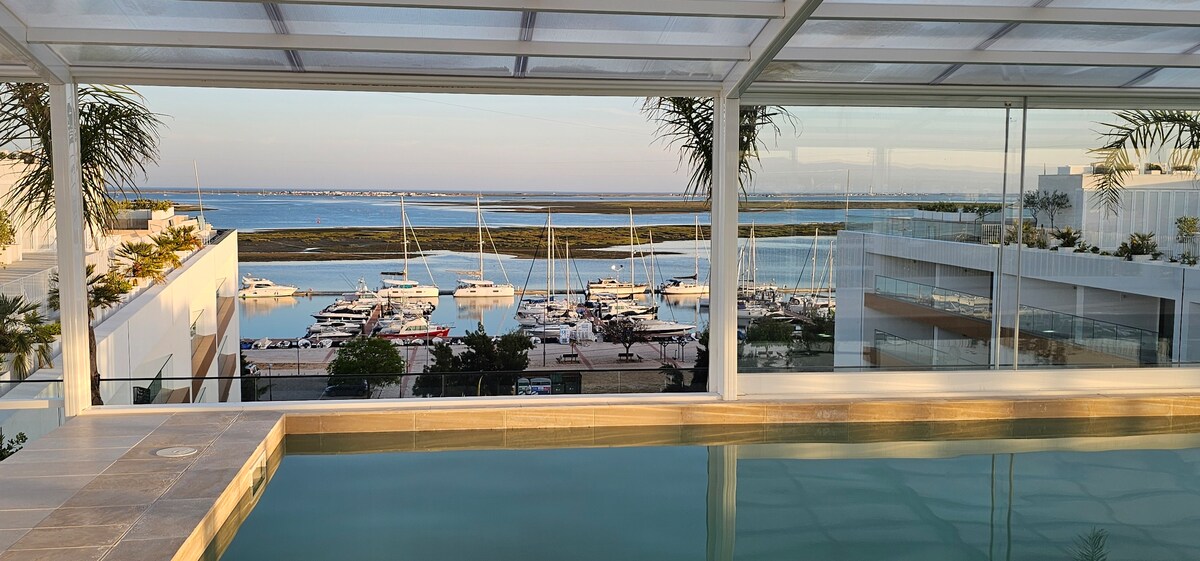 Gunstig gelegen in het Village Marina-complex, aan de Ria Formosa-front en in het hart van Olhão, ligt dit moderne appartement met 2 slaapkamers op enkele minuten afstand van watertaxi 's die vertrekken naar het beroemde eiland Olhão met wit zand en kristalheldere waterstranden. De nabijgelegen openluchtmarkt en de restaurants aan het water serveren heerlijke verse zeevruchten die die ochtend gekocht zijn van terugkerende lokale vissers, zijn slechts enkele van de geweldige faciliteiten die in deze buurt te vinden zijn.