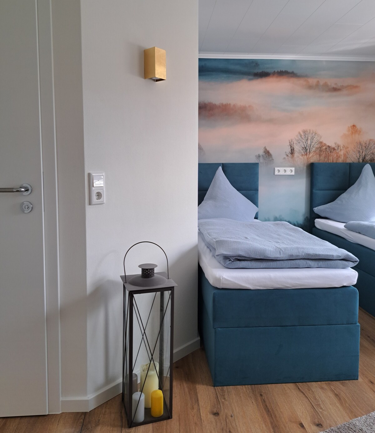 Ons tweede privé-appartement bevindt zich op de tweede verdieping van een modern huis voor drie gezinnen uit 2015. De locatie is centraal en toch aangenaam rustig – perfect om Brilon op een ontspannen manier te verkennen. Vanuit het appartement heb je een prachtig uitzicht op de Propsteikirche en het charmante stadje. De inrichting is modern, licht en zorgvuldig geselecteerd, zodat je je vanaf het eerste moment comfortabel kunt voelen.
