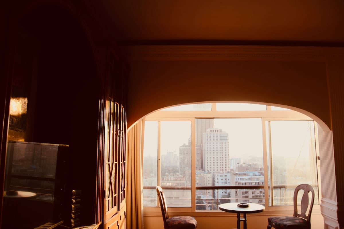 Verblijf in stijl in het misschien wel mooiste Airbnb-appartement in Caïro, gelegen in een vroeg-20e-eeuws gebouw gelegen in de onlangs gerenoveerde voetgangerswijk van het bruisende historische centrum van Caïro - het culturele, financiële en startup centrum van Egypte. Met 4 meter hoge plafonds, hergebruikte architectonische details en een vakkundig samengestelde mix van antiek, vintage en nieuw meubilair, beschikt dit appartement met twee slaapkamers over 3 balkons, een comfortabele keuken en een extra zolderbed.