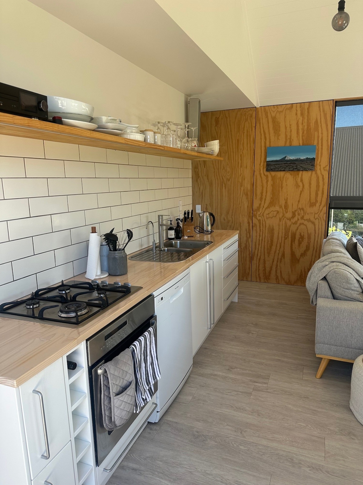 The Tree House ligt op een kleine heuvel in de boomtoppen en moet meerdere treden kunnen beklimmen voor toegang door de bush. Bovenaan krijg je een prachtig uitzicht op het omliggende bos. Dit eco-huis genereert zijn eigen elektriciteit en is ontworpen om de zon vast te leggen. Het is een prima uitvalsbasis om de Tongariro Crossing te doen.