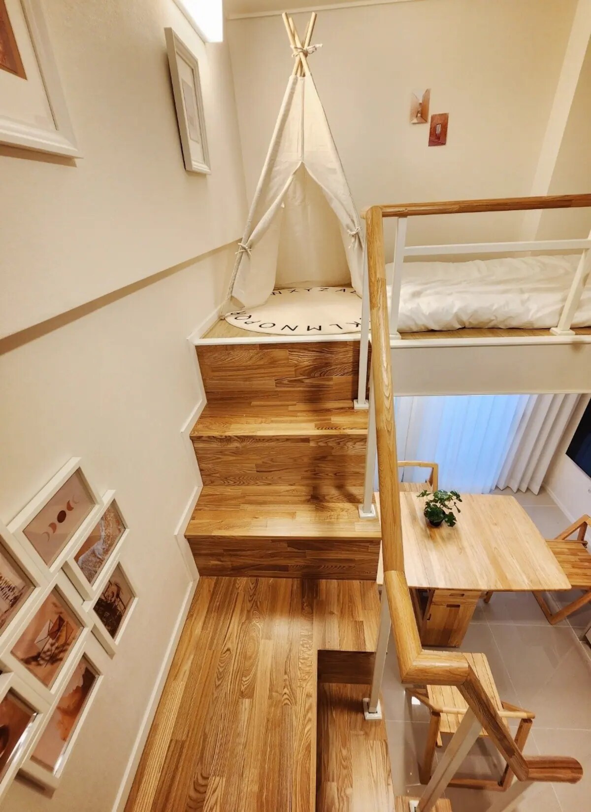 Dit is een eengezinswoning gelegen in Gyeonghwa-eup, Gyeonghwa-gun. De buurtcultuur is springlevend, dus we raden het aan aan degenen die rustig en afgelegen genezen. Je kunt de hele tweede verdieping gebruiken als privéwoning en het is een privépoort, dus je kunt privé blijven zonder het huis van de eigenaar te confronteren. Er is een binnenplaats op de begane grond en overal bomen, zodat je de vogels tijdens je verblijf kunt horen. Je loopt naar de lokale toeristische attracties, culturele bezienswaardigheden, restaurants en beroemde cafés (zoals Joyang Fabric) en je kunt bezorggerechten bestellen om te eten. U kunt ook een barbecue met luxe houtskool op het ruime balkon op de tweede verdieping hebben. (Als je je van tevoren aanmeldt, bereiden we het voor je voor.) De accommodatie is gescheiden in een kamer + woonkamer + keuken + toilet, en de badkamer heeft een ruim bad, zodat u een warm bad kunt nemen. Een kingsize bed en luchtmatras zorgen voor een goede nachtrust. In de woonkamer staat een tv in de woonkamer waar je kunt genieten van films met YouTube en Netflix.