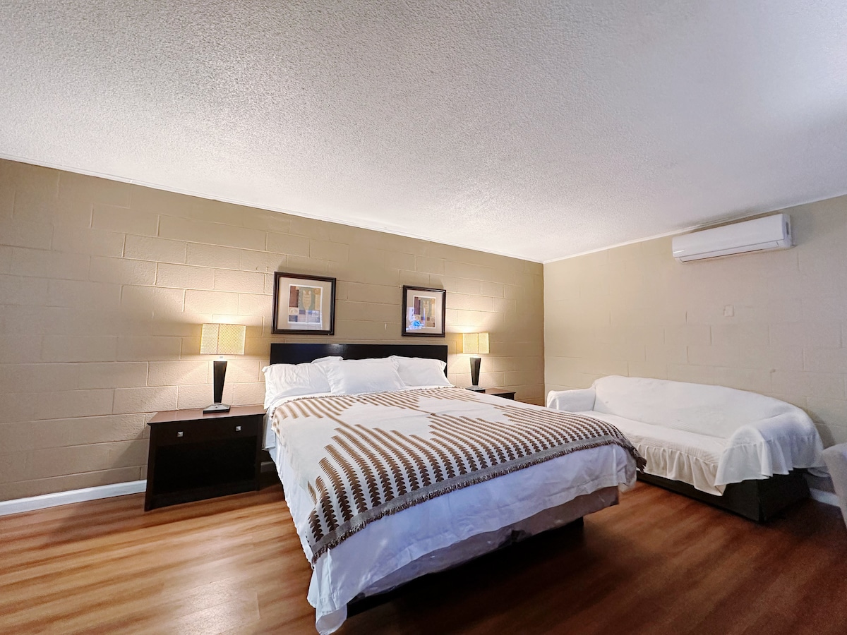 Hoi! Bedankt voor je interesse! Geef bij het inchecken een creditcard aan de receptie voor een terugbetaalbare borg van $ 250 en een schoonmaakkosten van $ 125 De host betaalt tot $ 100 terug voor kosten (na ontvangst) Geldig officieel legitimatiebewijs - moet 18 jaar of ouder zijn Sorry, prepaid betaalkaarten worden niet geaccepteerd, zoals Chime, netspend enz. Kamerbelasting $ 15 en parkeerkosten $ 20+ belasting/dag betaald door gast bij het inchecken Neem contact met ons op als je nog vragen hebt