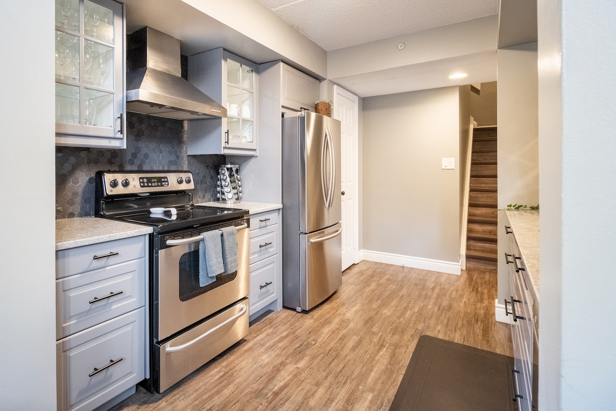 Op loopafstand van alle voorzieningen, parkeergelegenheid op het terrein. Volledig omheinde achtertuin met een mooie en eigen zithoek. Wandel terug van de rand van de Horseshoe Falls en trek je terug in een volledig gerenoveerd vrijstaand huis. Het open-concept herontwerp heeft een luchtige, professioneel ingerichte ruimte gecreëerd met roestvrijstalen apparaten. (We hebben extra voorzorgsmaatregelen genomen bij het reinigen van oppervlakken en linnengoed in het hele huis. We hebben een professioneel schoonmaakbedrijf om onze gasten te helpen beschermen!)