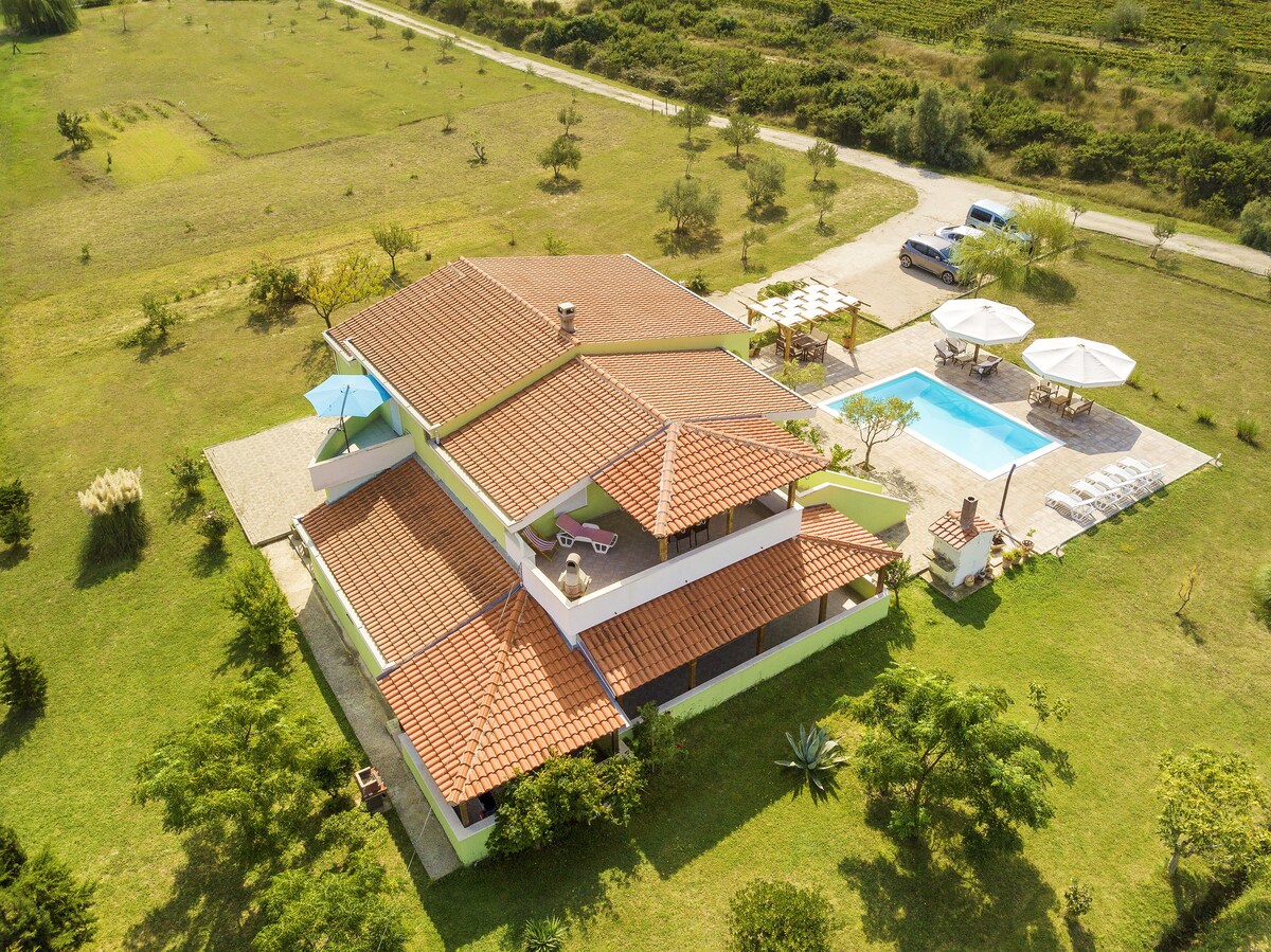 Geniet van je vakantie in een ruim familieappartement met een eigen zwembad en een terras met uitzicht op zee. Het appartement (90 m²) biedt 3 comfortabele slaapkamers, 2 badkamers, een apart toilet, een volledig uitgeruste keuken en een woonkamer. Twee kamers en de woonkamer zijn voorzien van airconditioning, terwijl de derde kamer een plafondventilator heeft. Gasten kunnen gebruikmaken van een eigen parkeerplaats, een barbecue, een kinderspeeltuin en een tuin met een schommel. Een zandstrand met een ondiepe, warme zee ligt op slechts 800 m van de accommodatie, ideaal voor gezinnen en ontspannen zomerdagen
