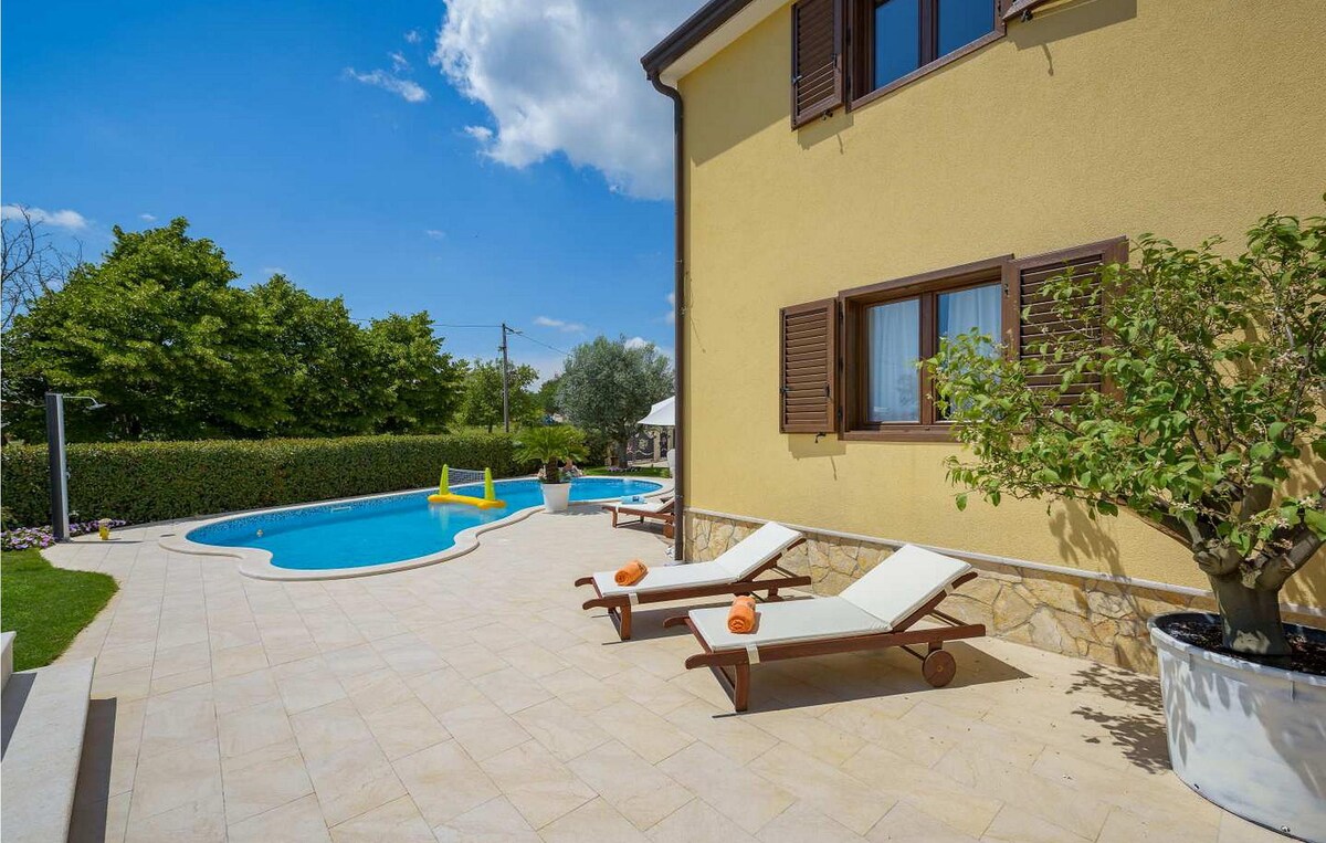 Villa Fiora is een modern toevluchtsoord in Vižinada met een eigen tuin van 500 m ², een zwembad, ligbedden en een grill. De villa van 120 m ² heeft drie slaapkamers met airconditioning, drie badkamers en een open woonkamer met een volledige keuken. Geniet van gratis WiFi, parkeergelegenheid en een volledig privéverblijf. Huisdieren zijn welkom (tegen betaling), kinderbedje aanwezig. Slechts 14 km van het strand - ideaal voor een rustig uitje.