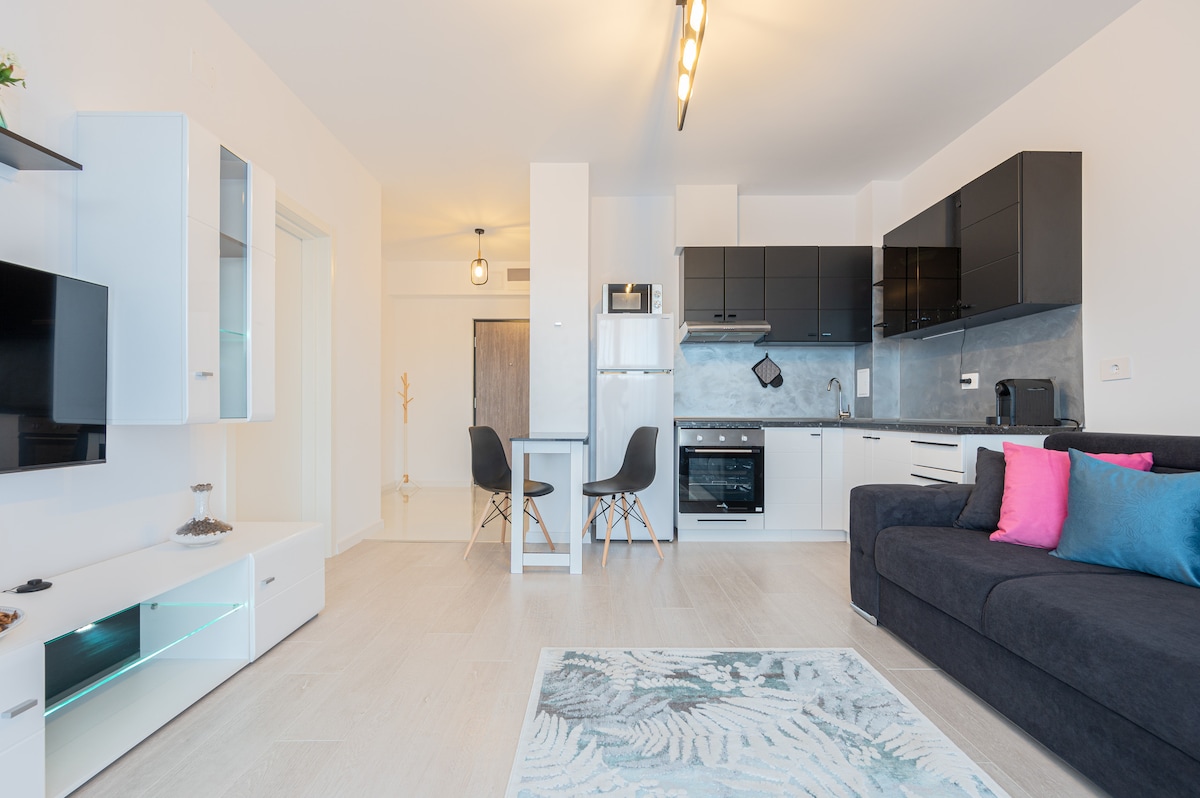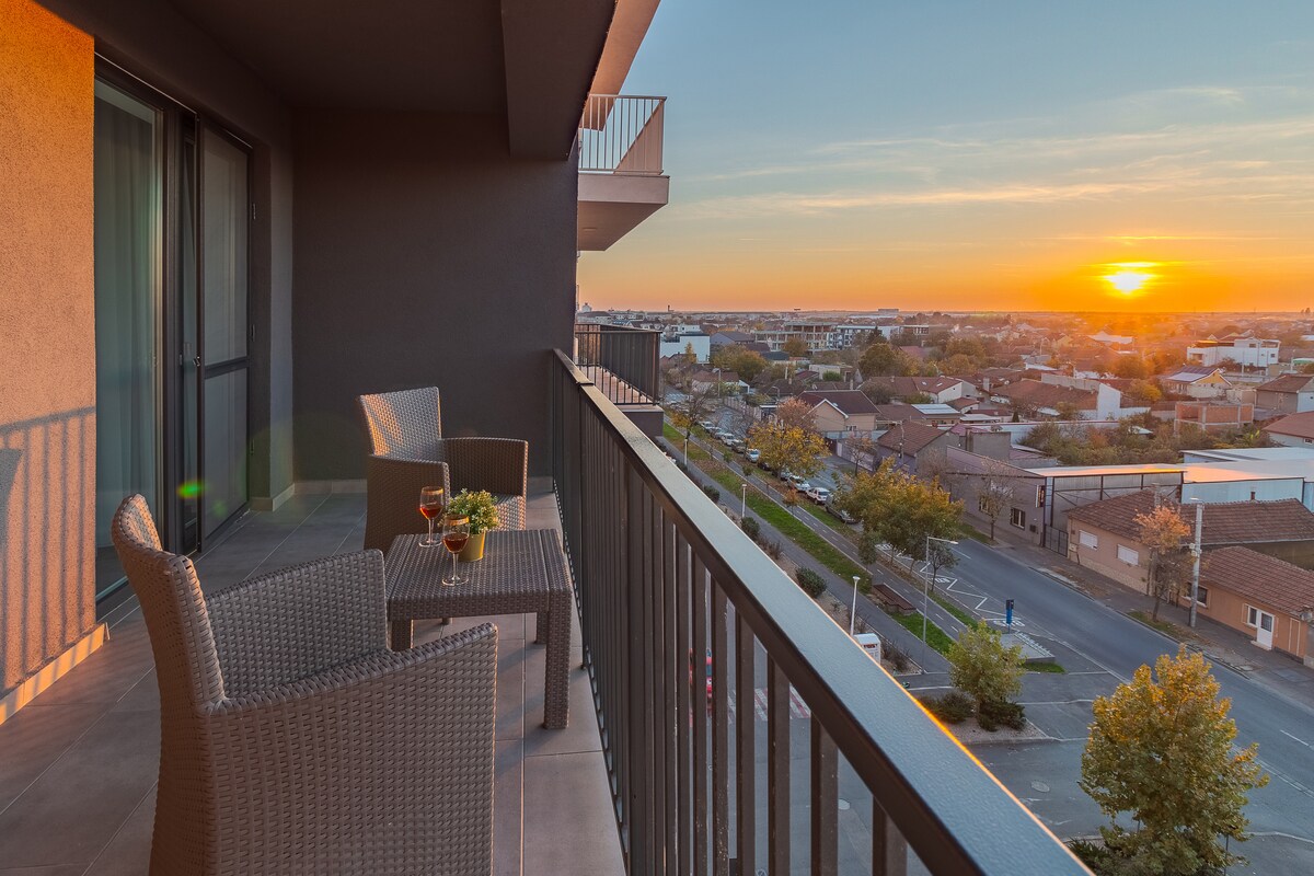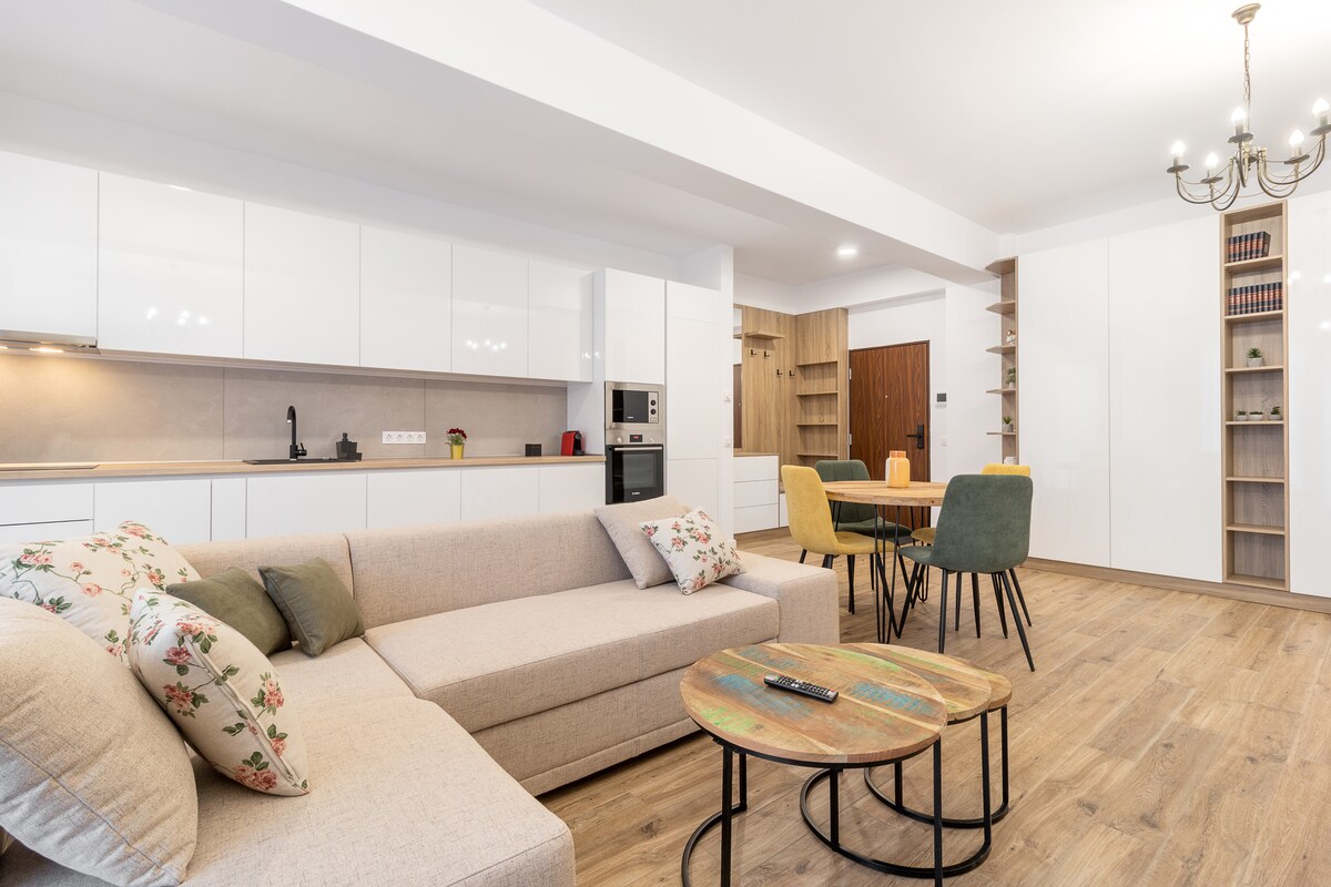 We verwelkomen je graag in ons gloednieuwe, elegante appartement, met zijn spectaculaire zonsondergangen over de stad. De voorkeursparkeerplaats is vlak bij het gebouw. Moderne en praktische apparaten zullen je verblijf vergemakkelijken. Perfect gelegen in een van de nieuwste woongebouwen in Oradea, op enkele minuten lopen van de oude binnenstad. Professioneel reiniging- en ontsmettingsprotocol. Snelle en gemakkelijke toegang via de accommodatie met een codegebaseerd systeem.