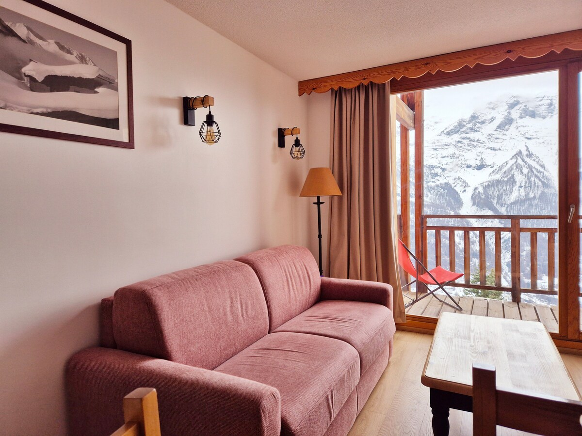 Cabinestudio (32 m²) op vijf minuten lopen van de sneeuwfront en overdekte parkeergelegenheid. Slaapt 5: slaapgedeelte, afgesloten door verduisteringsgordijnen: 1 tweepersoonsbed en 1 stapelbed. Woonkamer: slaapbank voor 2 personen Ruime woonkamer met uitgeruste keuken (magnetron/grilloven, Senseo-koffiezetapparaat, raclette- en fondue-apparaten, vaatwasser, tv, wifi; Balkon S/O. Prachtig uitzicht niet over het hoofd gezien. Douche, toilet, haardroger, strijkijzer. Ski-/fietsenstalling (2) Beddengoed, toiletartikelen, huishoudelijke producten, theedoeken... aanwezig. Schoonmaak inbegrepen
