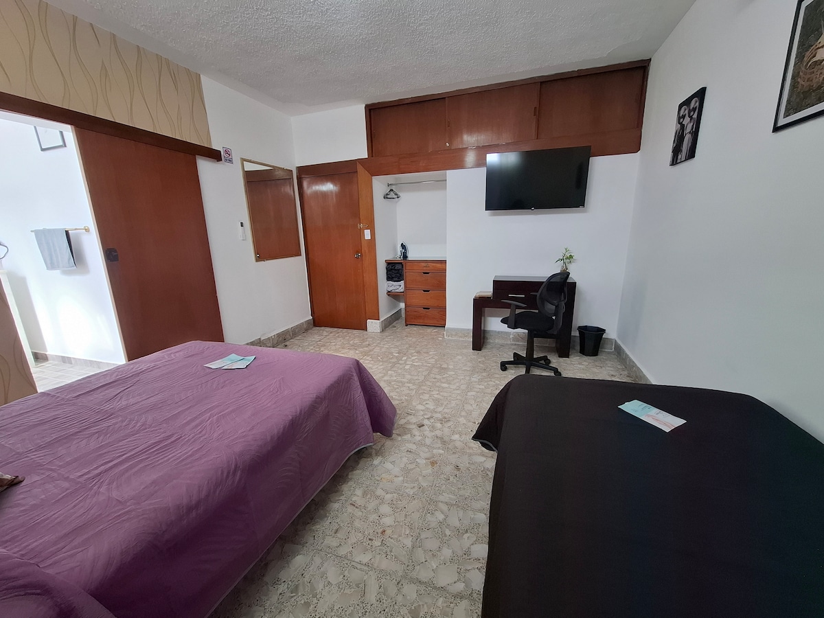 Disfruta del confort de la Suite que incluye aire acondicionado, una cama matrimonial y una individual con colchones premium, frigobar, plancha de ropa, secadora de cabello, pantalla, área de trabajo, guardarropa, Wifi y baño privado. Además de áreas comunes: red de descanso, jardín, medio baño, alacena con llave en la cocina para cada habitación, cocina equipada, dos salas, desayunador, comedor y Wifi en todas éstas áreas. Check in 2 pm. Check out 12 del día. Cupo: Tres personas