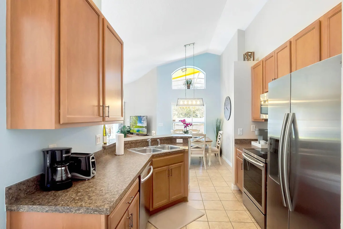 10 minuten naar Disney | Verwarmd zwembad, spelletjes, kingsize bed