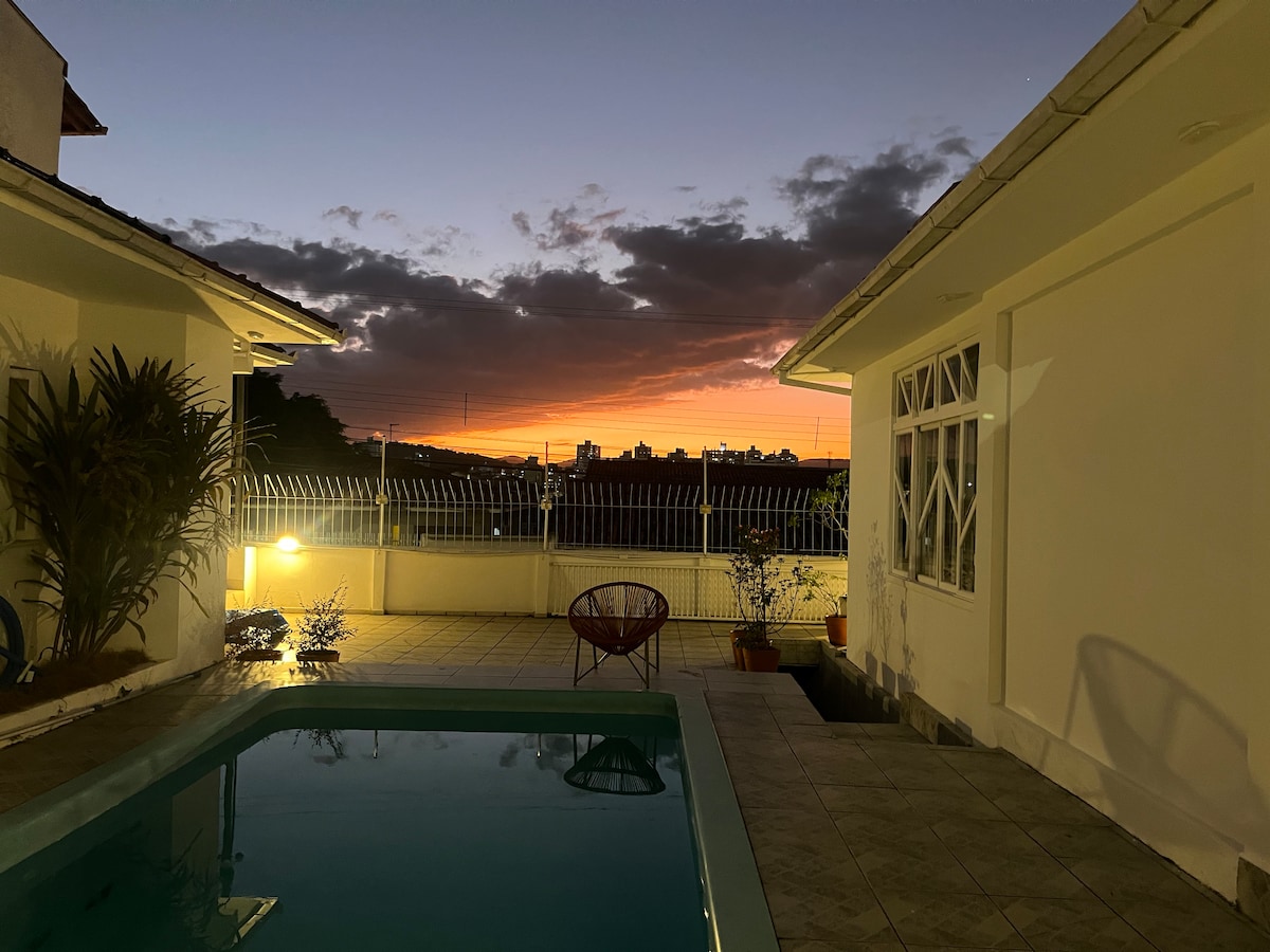 Geniet van een gezellige, moderne en goed uitgeruste suite in een rustige accommodatie, met zwembad en gratis parkeren. Het heeft een comfortabel bed, airconditioning, thuiskantoorruimte en snel internet. Ideaal voor stellen of zakenreizigers die op zoek zijn naar comfort, functionaliteit en een goede locatie tussen São José en Florianópolis. Voor het opladen van elektrische voertuigen, controleer de beschikbaarheid - R$ 1,50 kWh