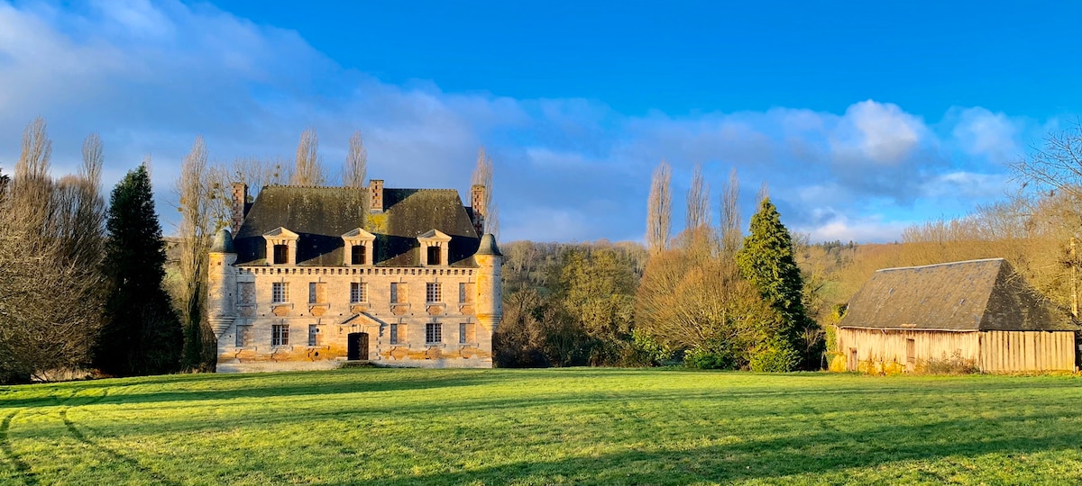 Be our guest in Chateau du Fresne! We are since the end of September 2022 the proud owners of the amazing monument of 13th/15th/16th/18th century Chateau. We have great plans for the future. Your stay here will be the first experience of an old house. Before renovations!! We have one bathroom which we will share. We heat up with big fireplaces (lots of wood). So the experience will be ‘glam-basic’ in the most beautiful environment! Please contact questions. Extra costs Table d’hote €35pp