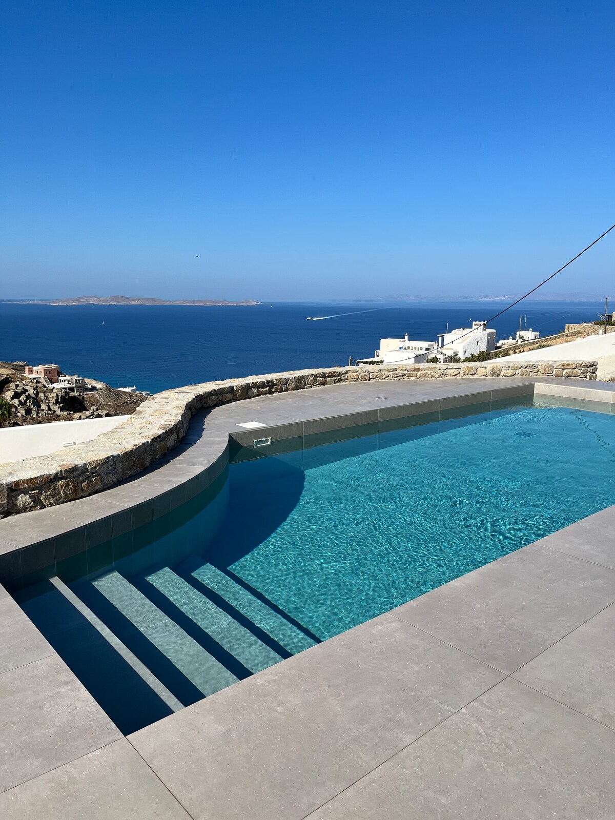 De villa is gebouwd in de meest bevoorrechte positie met volledige rust in combinatie met een adembenemend uitzicht en de beste zonsondergangen van het eiland. De villa bestaat uit prachtige luxe, gebouwd met alle voorzieningen die het leven rijker, meer ontspannen en lonend maken. De villa is gelegen in het gebied Agios Ioannis-Ornos-Pouli, een van de meest verschillende gebieden van het eiland met een ononderbroken uitzicht op de Egeïsche Zee en de eilanden Paros, Naxos, Delos, Syros, Tinos met een overloopzwembad.