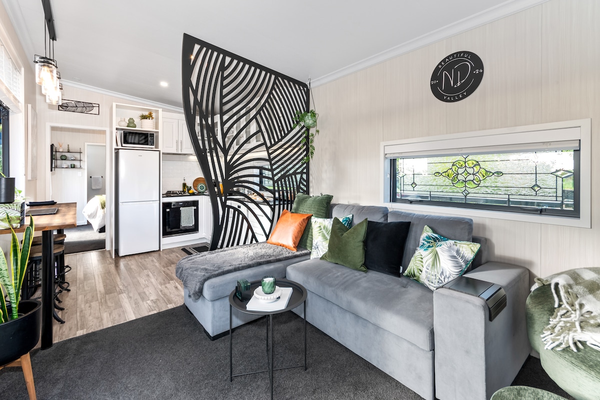 Welkom bij Nava Deena: je romantische retraite in het hart van Tauranga! **Niet geschikt voor kinderen onder de 13 jaar** Ontdek Nava Deena, een echt prachtig designhuis met één slaapkamer gelegen op een serene hectare grond midden in het centrum van Tauranga. Onze accommodatie is een uniek toevluchtsoord dat de rust van het landelijke uitzicht combineert met het gemak van het stadsleven. Stel je voor dat je wakker wordt met het uitzicht op schapen die grazen in onze rustige vallei en geniet van de avondzon vanuit je eigen bubbelbad.