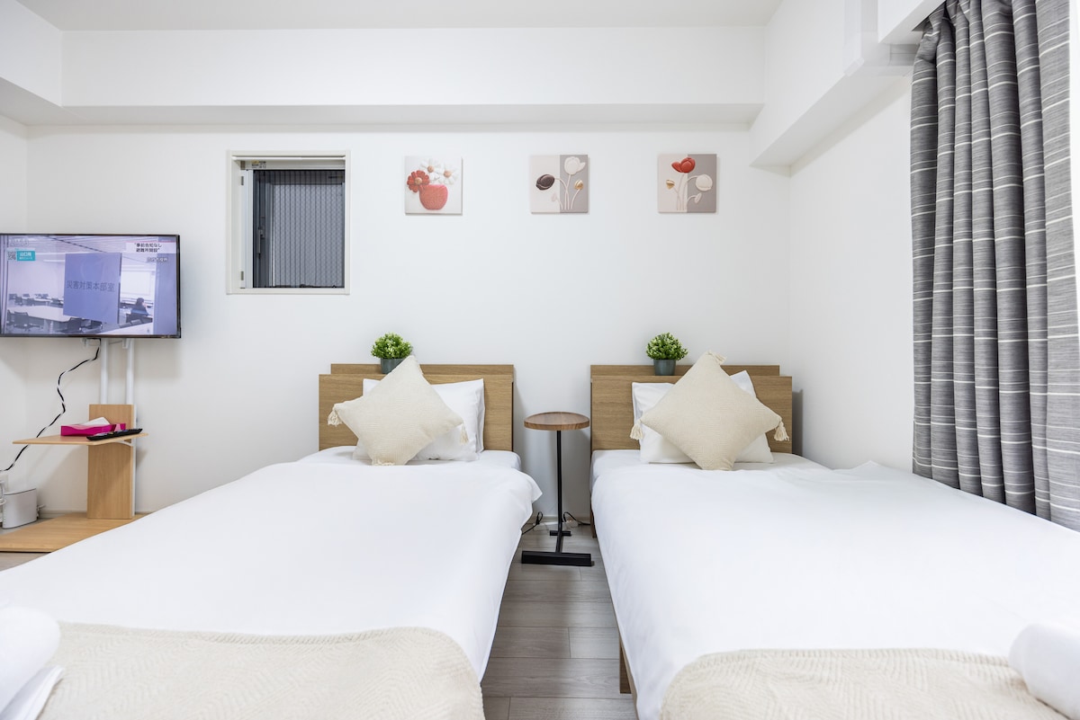 Namba LiveHouse Naniwa-ku dicht bij Namba winkelgebied Directe toegang tot de luchthaven Supermarkt aan de overkant 2 tweepersoonsbedden Nieuw bed Geluidsisolerende gordijnen