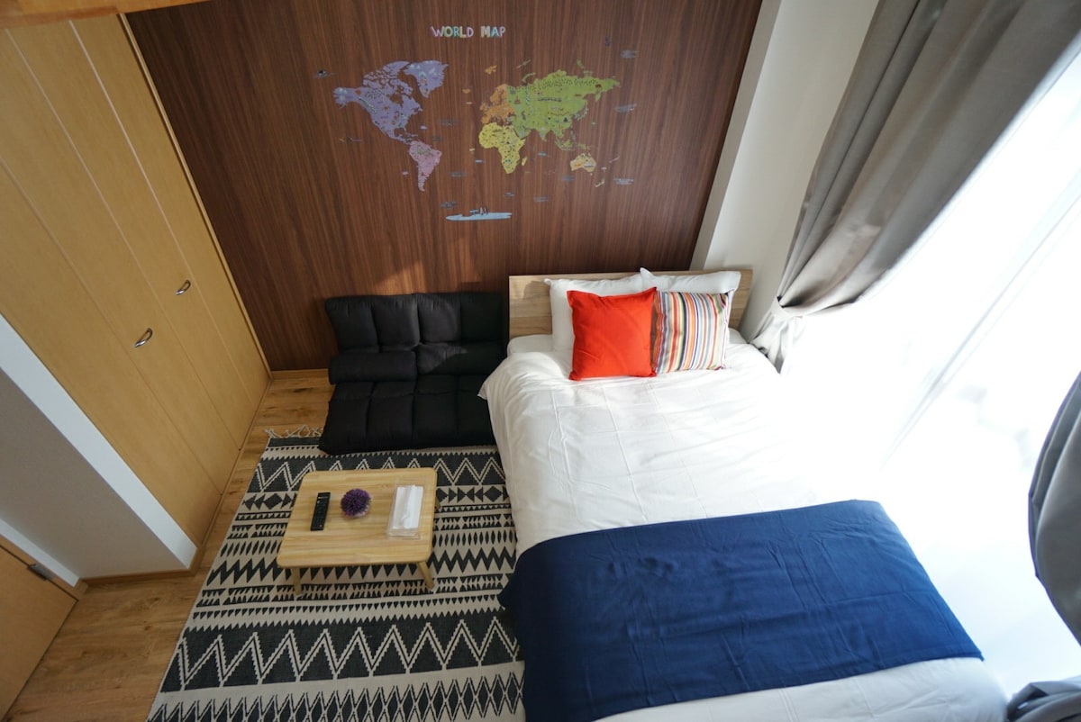 Apartment located in Namba area, 5 minutes walk to Nipponbashi station. This studio apartment is perfect for a group of 6 people. Includes 1 double bed and 2 comfortable double sofa beds. Sorry, because of the eco friendly, please bring your own consumables. (toothbrushes, combs, shower caps, bathrobes, razors, etc. are not provided) If you have very high hygiene requirements, please be cautious.