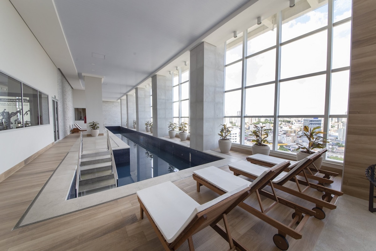 Welkom in onze studio in The Cityplex Osasco, een van de meest moderne en gewilde appartementen in Osasco! Aan elk detail is gedacht voor je beste ervaring: van de elegante decoratie tot het luxe beddengoed en handdoeken. Het appartement biedt een super comfortabel bed, uitgeruste keuken en snelle wifi. Het appartement heeft een hoogwaardige structuur, waaronder een zwembad, een fitnesscentrum, een gastronomische ruimte, coworking, 24-uurs beveiliging en nog veel meer.