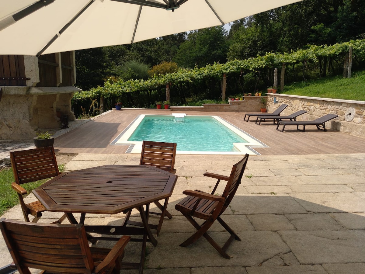 Casa rural boutique con 150 años de historia, muy bien situada para visitar toda Galicia. La casa se encuentra en un valle a 15 km. de Santiago, a 20’ de las playas y a menos de 1 hora de varios parques naturales. La localidad de Bertamiráns donde encontraréis todos los servicios está a 3km. La casa es ideal para familias ya que tiene 7 dormitorios, 5 baños y varias zonas de estar. Amplios exteriores con piscina, patios, barbacoa, porches y jardines. Zona de de juegos y aparcamiento privado.