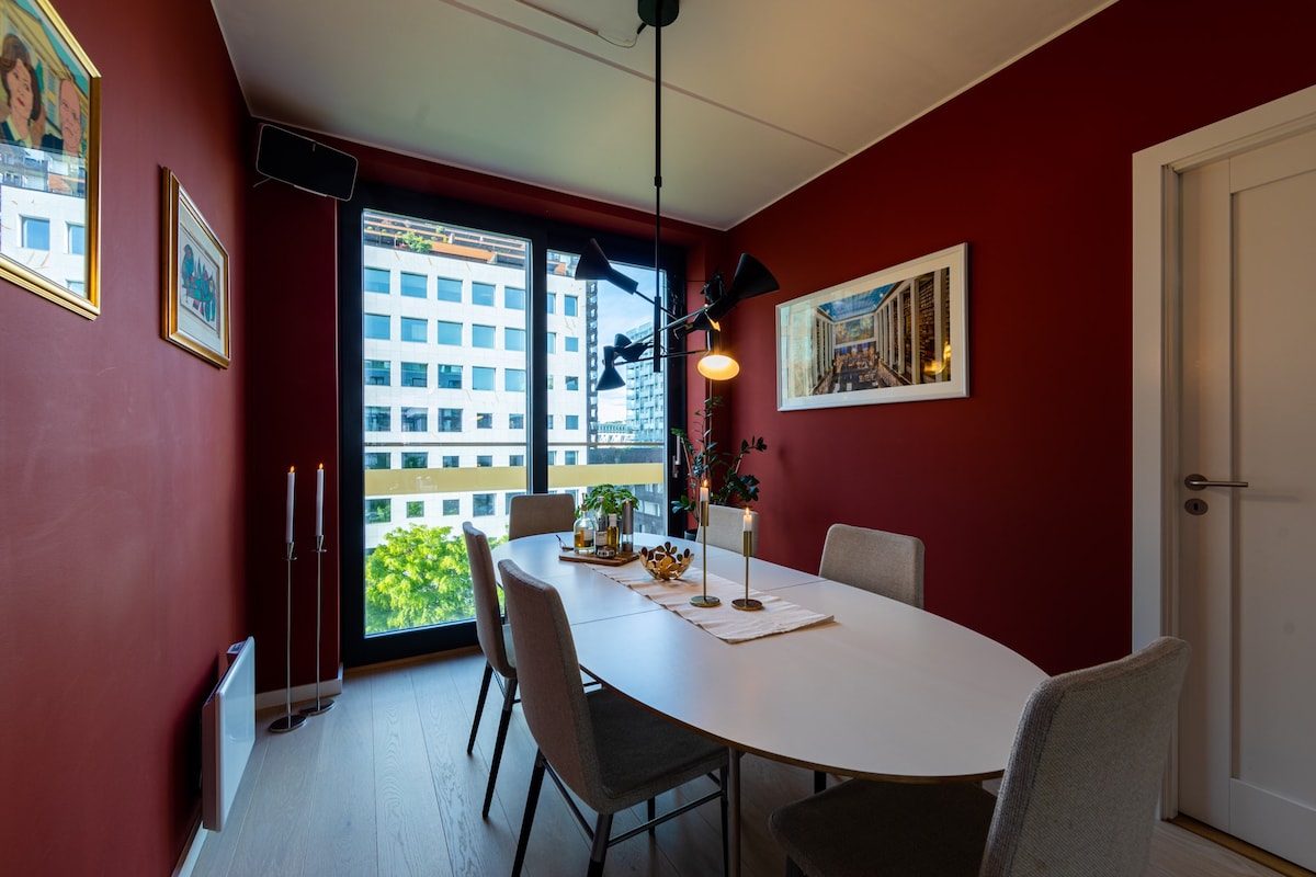 Hier woon je dicht bij alles - van gezinsvriendelijk strand midden in het centrum van Oslo (opera-strand), tot winkels, restaurants en cafés. Met balkon op rustige achtertuin, maar toch op slechts enkele minuten afstand van het levendige plein van Bjørvika, met brunch bij Vandelay, Kumi of The Platz als een kans - of koop het ontbijt bij Good Bread en zit aan de waterkant om mensen het ochtendbad te zien nemen. Drie minuten naar het Munch Museum en de Opera, op 7 minuten lopen van Oslo S, op 10 minuten lopen van Karl Johan. Perfect vakantieappartement!