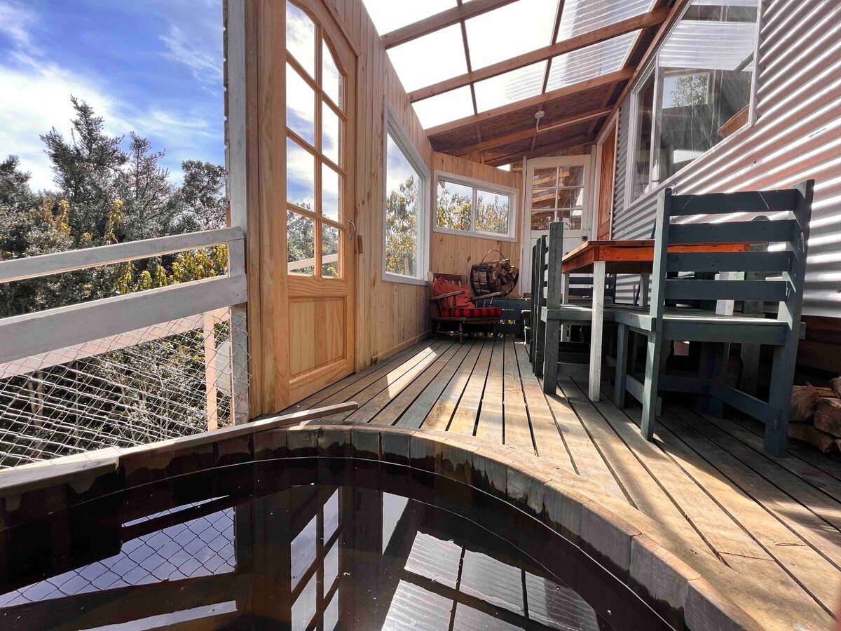Gezellige hut omgeven door zuidelijke natuur en midden op het strand van Lake Rupanco. Met een prachtig uitzicht op het meer en de vulkanen Sarnoso en Casa Blanca, en achter de Puntiagudo. Het heeft alles wat je nodig hebt om comfortabel en warm te zijn (Bosca en handgemaakte dekens). Het is ook uitgerust met Starlink snel internet, voor diegenen die tijd willen doorbrengen met werken weg van de stad. Rustige en volledig natuurlijke plek. Het water dat aankomt is van vertiente ✨