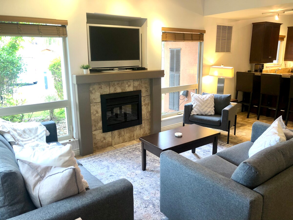Geniet van dit lichte appartement met 2 slaapkamers/2 badkamers in het hart van Kelowna. Slaapt 6 met een kingsize, queensize en queensize slaapbank. Kook in een complete keuken, ontspan bij de gashaard, stream Netflix op de grote tv of geniet van een kopje koffie op het balkon. Een zeer beloopbare buurt met nabijgelegen parken, stranden, wijnmakerijen, brouwerijen, winkels en restaurants. Gratis zelf inchecken, beveiligde parkeergelegenheid, wasserette in de suite, centrale verwarming/airconditioning, snelle wifi en geen schoonmaakkosten! Big White Ski Resort op minder dan een uur rijden.