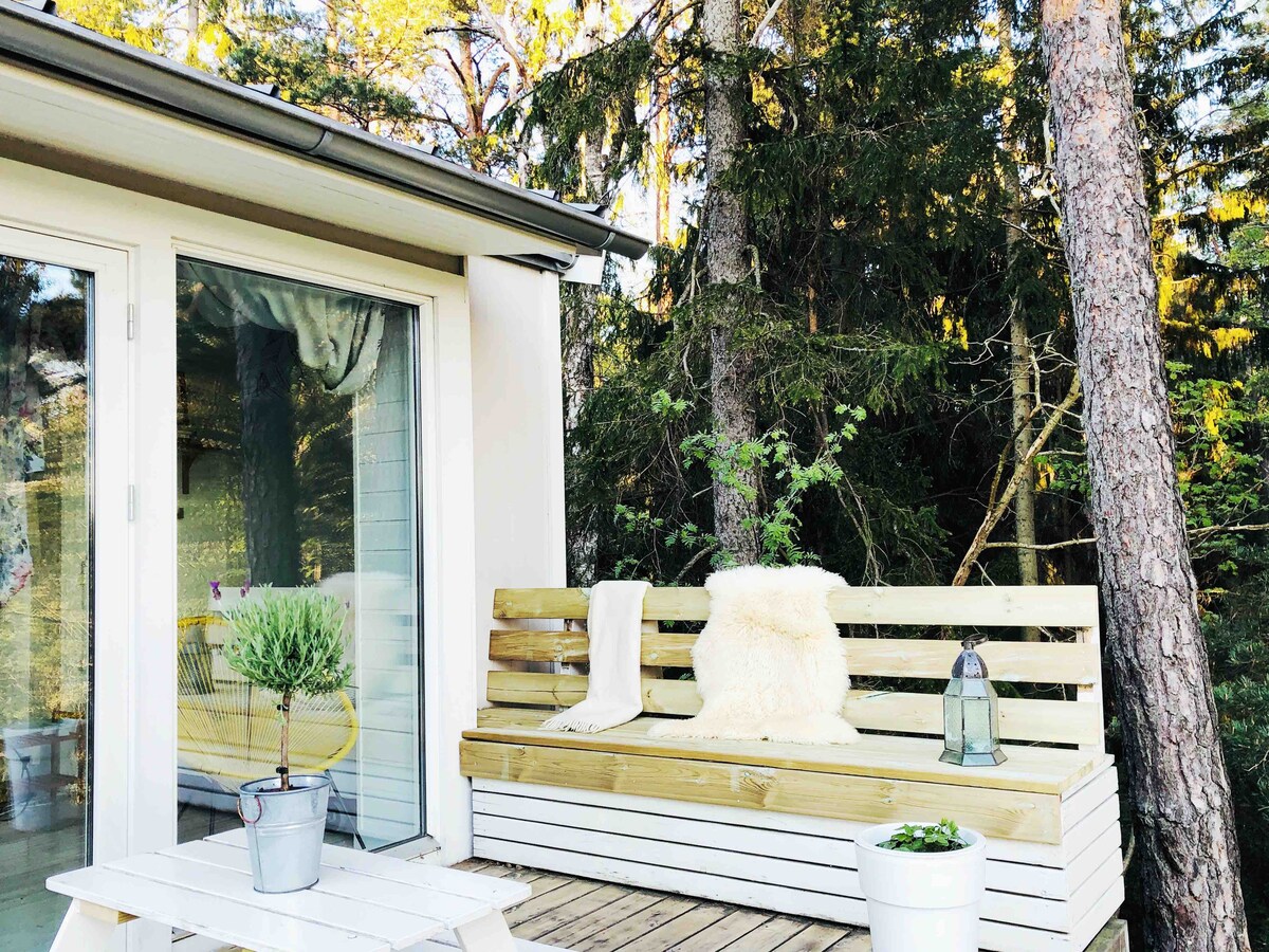 Welcome to this two bedroom + bathroom cottage facing a stunning southerly view over the archipelago of Stockholm, and with a private jetty for swimming and relaxing. Attached mountainbikes/bikes, kajaks, sauna and hottub are for guest disposal. Suitable for couples or the small family to enjoy a relaxing stay at the port of Stockholm, with nature at your doorstep. Private sitting area outside cottage, with fully equipped outdoor kitchen, barbecue possibilities and view over the ocean.