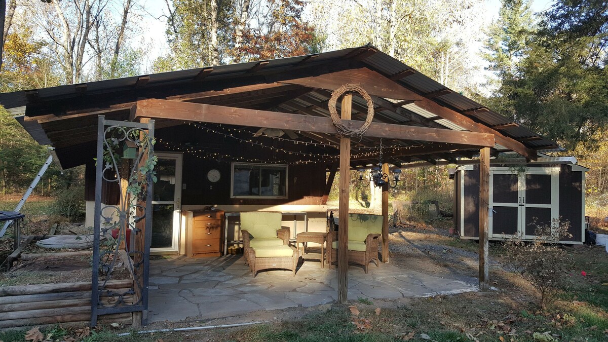 Ahhhh.........quiet, get away from the hussle and bussle of life. The sound of a mountain creek taking your stress away. Getting back to nature, the gentle sway of a breeze, a starry night, rain pitter patter on a tin roof or the sun shining bright and warm. A lovely get away, barely minutes from George Washington National Forest, and yet only 20 minutes to Harrisonburg and JMU.