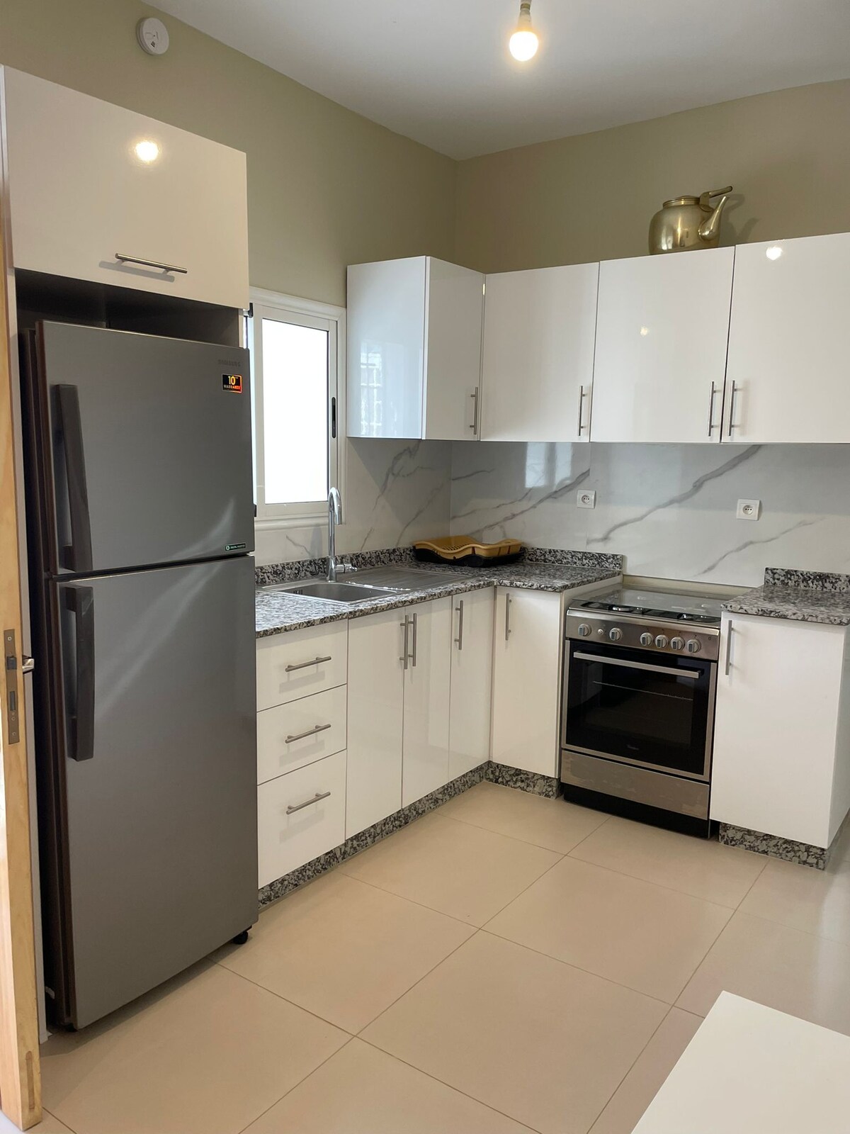 Dit gloednieuwe en goed uitgeruste appartement Deze plek is dicht bij Marjane 1 minuut lopen en 5 minuten naar Sidi Bouzid met je auto Let op: het appartement op de vierde verdieping en ze zijn geen lift Houd er rekening mee dat in El Jadida de watertoevoer na middernacht wordt afgesloten vanwege lokale omstandigheden. Om je comfort te garanderen, hebben we voor jouw gemak water gallons in de keuken opgeslagen. Plan je waterverbruik dienovereenkomstig en veel plezier met je verblijf!