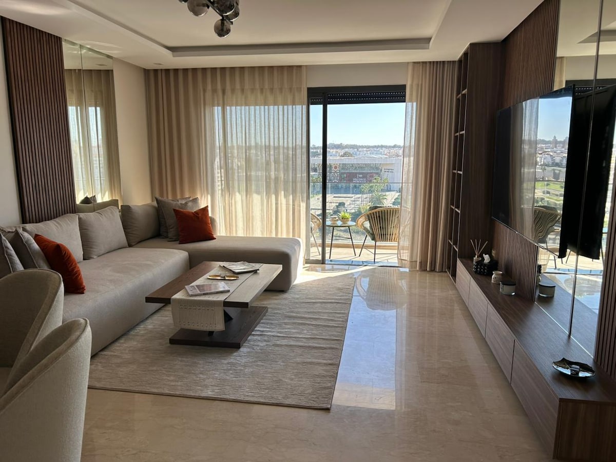 📍 Premium centrale locatie De residentie ligt op 1 minuut lopen van het treinstation waar je restaurants, cafés en winkels vindt, ideaal om Rabat gemakkelijk te ontdekken. 🌿 Veilige en groene woning Rustige en aangename residentie, 24 uur per dag beveiligd, met prachtige groene ruimtes en eigen ondergrondse parkeergelegenheid inbegrepen. 🏙️ Uitzonderlijk uitzicht Dit luxe appartement is gelegen op de 7e verdieping en biedt een prachtig en panoramisch uitzicht op Rabat, dag en nacht.