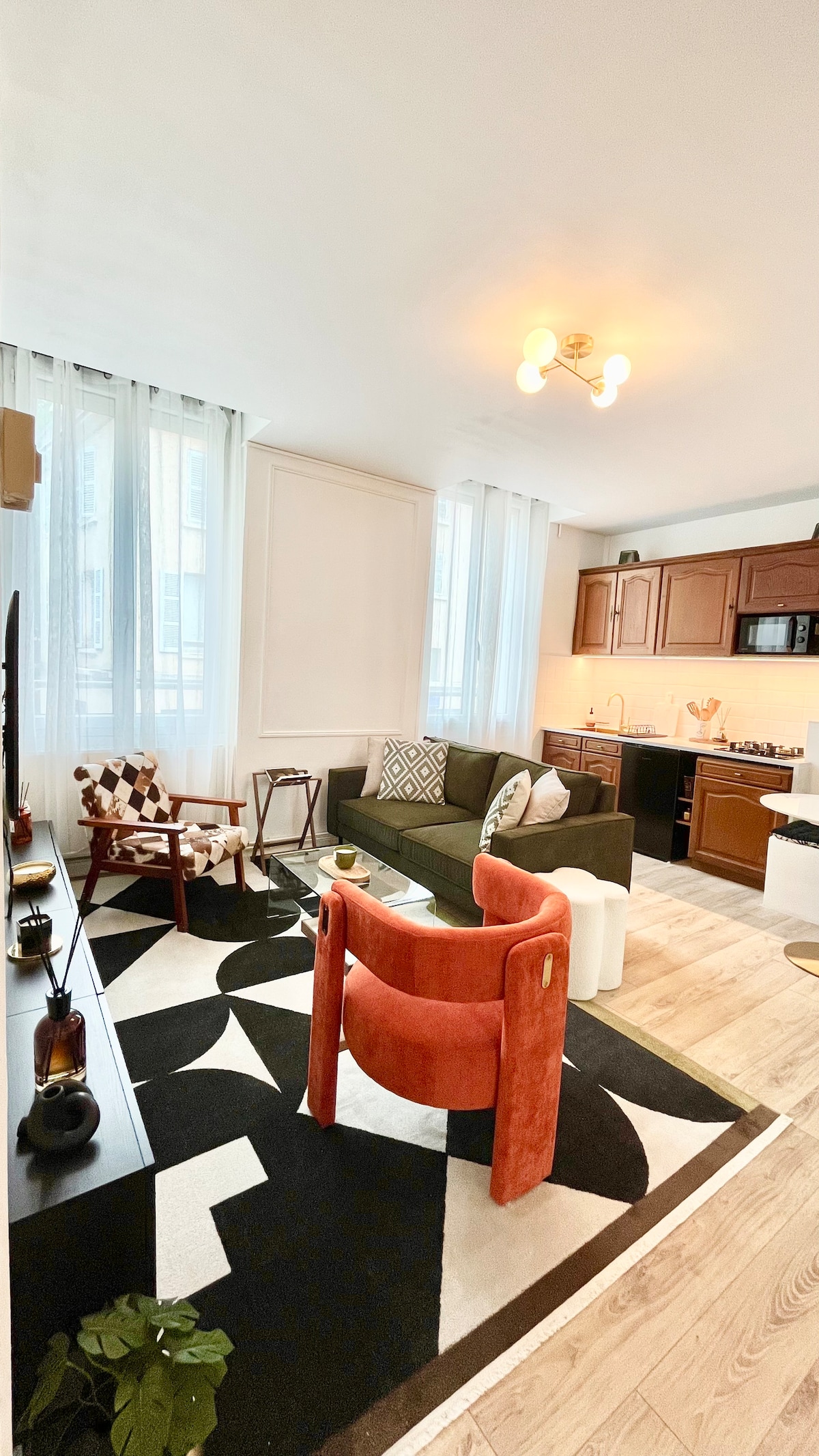 Ontsnap naar de Noomi Suite, je luxe spa-retraite aan de rand van Lyon. Geniet van totale ontspanning met een bubbelbad, regendouche en dubbele wastafel. Geniet van totaal comfort met queensize beddengoed in hotelstijl, een grote kleedkamer en een volledig uitgeruste keuken. Ideale locatie: op 2 minuten lopen van het metrostation Oullins Centre (directe toegang tot Lyon La Part-Dieu). Alle winkels aan de voet van het gebouw. Perfect voor een ontspannen weekend of een comfortabele zakenreis. Boek nu!