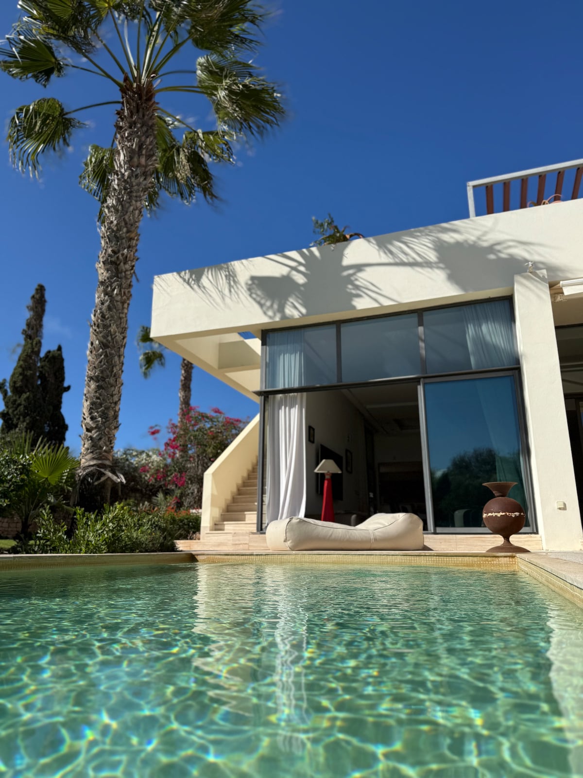 Villa Saouira ligt op minder dan tien minuten van de beroemde Medina-Mogador en is een eigentijdse villa met high-end afwerkingen gelegen in het weelderige Essaouira golfresort, exclusief en veilig 24 uur per dag. Het strand en de duinen liggen langs het landgoed. De tuin wordt onderbroken door prachtige palmbomen en veel lokale planten: je vindt er een zwembad, een eettafel in de schaduw van de pergola, verschillende terrassen. Een tuinlounge en veel ligbedden zijn tot uw beschikking.