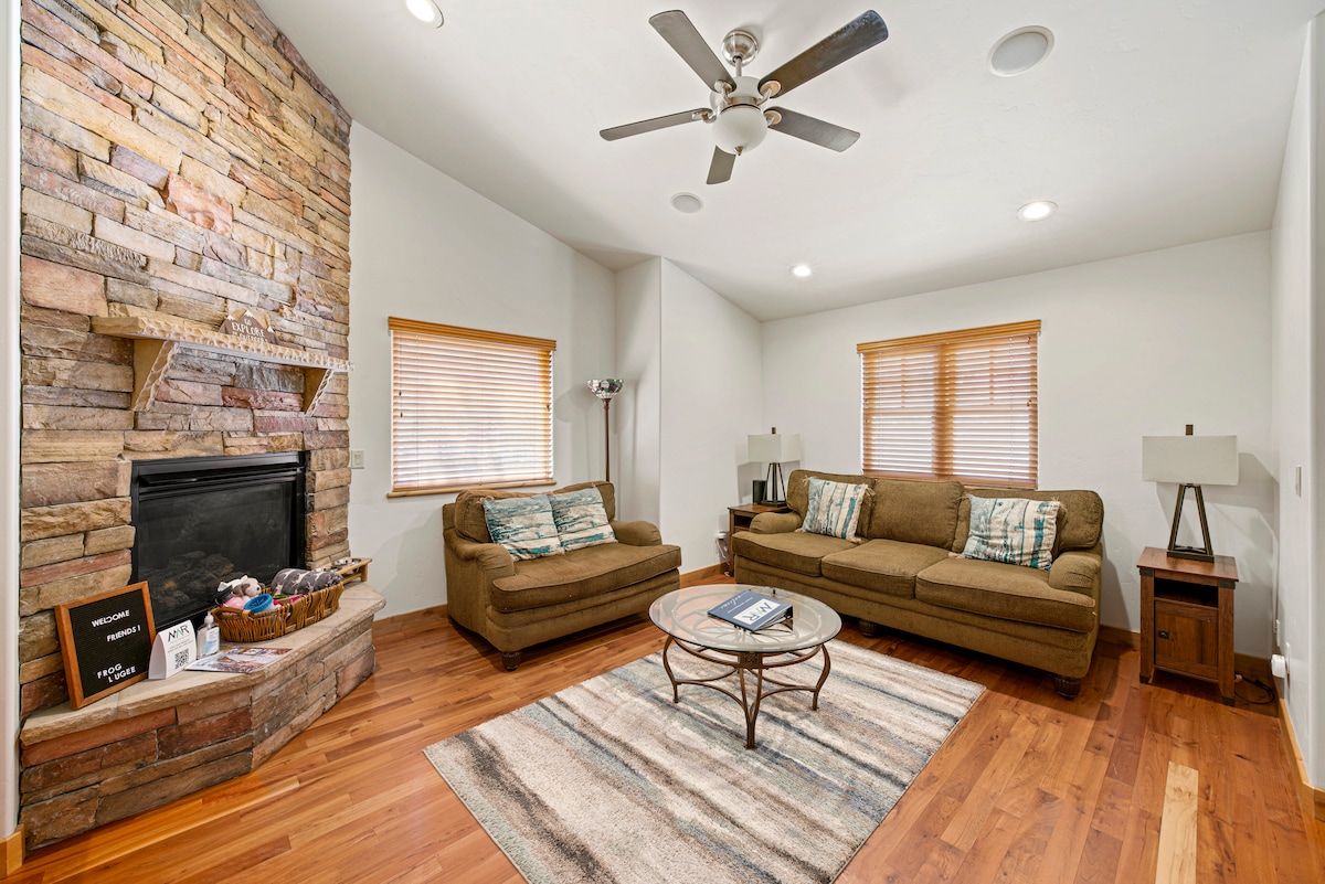 Dit prachtige Ouray Condo is gunstig gelegen op een steenworp afstand van Main Street maar toch zeer rustig zeer rustig gelegen! Op een steenworp afstand van winkels, restaurants, Perimeter Trail en het wereldberoemde Ice Park! Ongeveer een uur rijden naar Telluride. Bijgewerkt en stijlvol met opgewaardeerd kingsize bed, slaapbank van traagschuim, volledig uitgeruste keukenapparatuur met airfryer! Het appartement is ideaal voor koppels, solo-avonturiers en gezinnen/groepen van 4 die op zoek zijn naar een plek om te ontspannen. Geniet van de hangmatstoelen of ga bij de open haard zitten na geweldige avonturen.