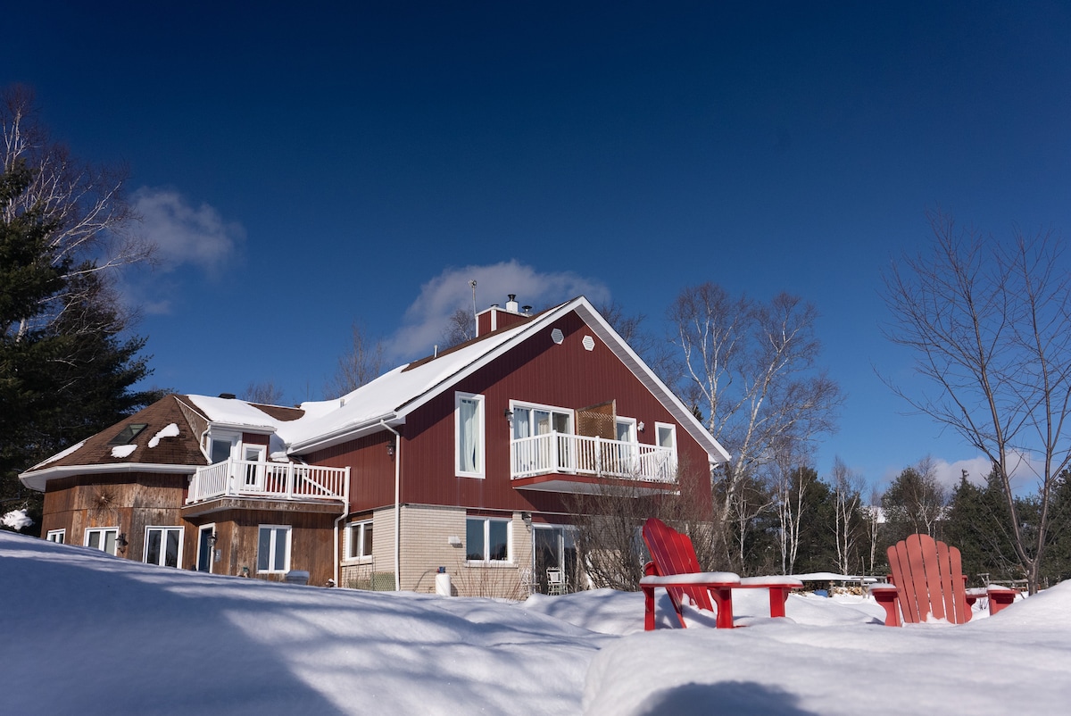 CITQ #305691 Rustige hoek op 25 minuten van Ottawa. Parkeerplaats (EV-oplader), zwembad, BUBBELBAD en toegang tot alle ruimtes van het huis, behalve de bovenste (gastenkamer). Ideaal voor een stel, een klein gezin of een werknemer. Comfortabele queensize bedden. Intieme ruimte onderaan het huis met eigen badkamer; koelkast, magnetron, continentaal ontbijt inbegrepen: toast, ontbijtgranen en koffie. Diverse activiteiten in de buurt; langlaufen, sneeuwschoenwandelen, fietsen en wandelen.