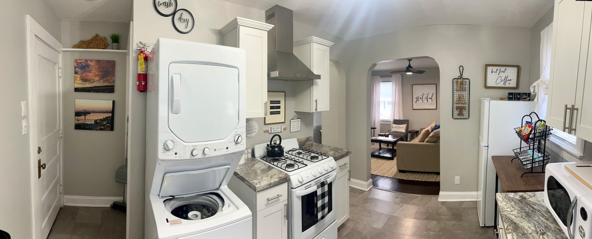 Doe het rustig aan in dit unieke uitje.. Volledig gerenoveerd huis van 2000 m ² met een prachtig uitzicht op de rivier, 3 slaapkamers, 2 familiekamers, 2 volledige badkamers, volledig gevulde keuken. De achtertuin is omheind met een terras, patiotafel en zweefvliegtuig. Deze accommodatie ligt op een paar blokken van het Owensboro Convention Center, het Bluegrass museum en meerdere restaurants in het centrum. Deze accommodatie grenst aan het Engelse park. Uitstekende verhuur voor een weekendje avonturen in het centrum of gewoon genieten van het uitzicht op de rivier.