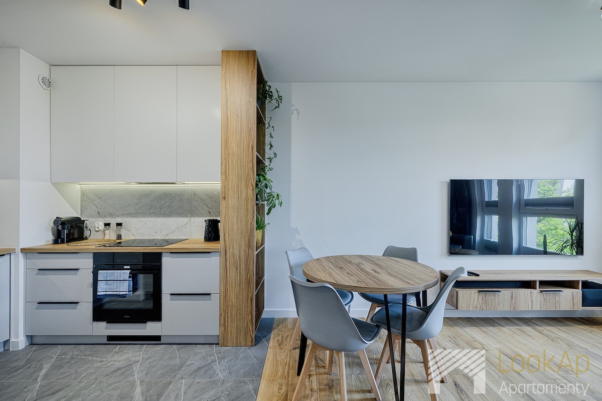 Werk- en rustappartement is de perfecte ruimte voor mensen die de balans tussen productiviteit en ontspanning waarderen. Een modern appartement in de prestigieuze Progress Zone in het centrum van Łódź, combineert het comfort van een alledaags verblijf met extra voorzieningen voor actieve en werkende reizigers. Gasten kunnen gebruikmaken van een fitnessruimte en een gedeelde werkruimte.