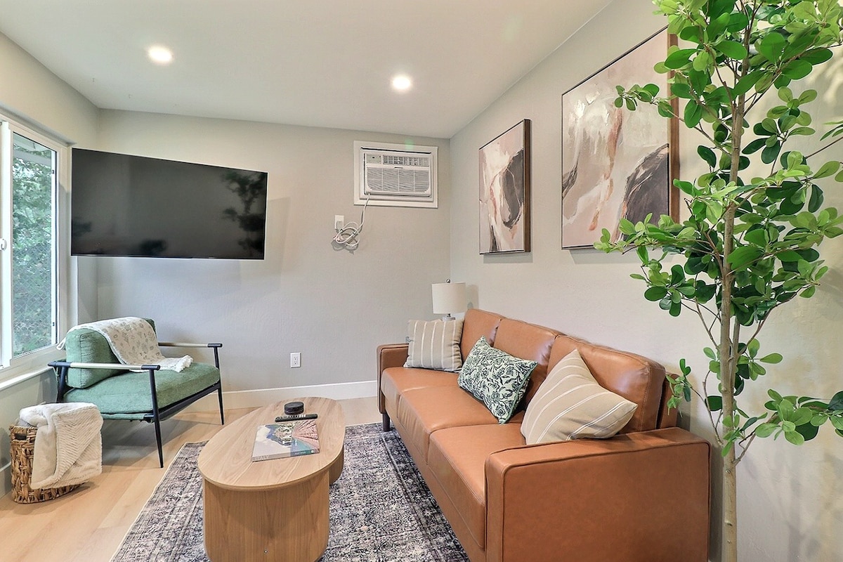 Dit is een charmant vrijstaand huisje naast het hoofdhuis met een eigen ingang. Je kunt gebruikmaken van een hectare tuin waar je kunt ontspannen. Het heeft een grote koelkast met een stapelbare wasdroger De accommodatie ligt op 11 minuten van de Lafayette BART en op 7 minuten van het centrum van Walnut Creek. Briones Wildlife Park ligt op minder dan anderhalve kilometer afstand. We hebben vier katten en twee kleine hondjes. Huisdieren zijn van harte welkom, maar we vragen om grote honden aangelijnd te zijn. TESLA opladen beschikbaar.