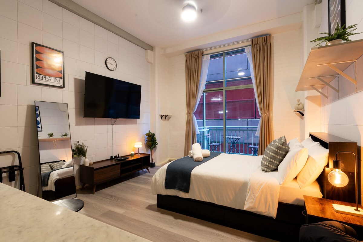 Ontspan in onze stijlvolle CBD-oase - een onlangs gerenoveerd modern studio-appartement in het hart van Sydney. Dit zonnige toevluchtsoord in de binnenstad beschikt over luxe voorzieningen, waaronder een queensize bed met hoogwaardig beddengoed, een chique badkamer met gratis toiletartikelen, een wasmachine, een volledige keuken, een Nespresso-apparaat, thee, gratis wifi en Netflix. Geniet van een prachtig uitzicht op Oxford Street terwijl je op loopafstand bent van het Opera House, de Art Gallery, de Sydney Tower en de Royal Botanic Gardens. Perfect voor je verblijf in Sydney!