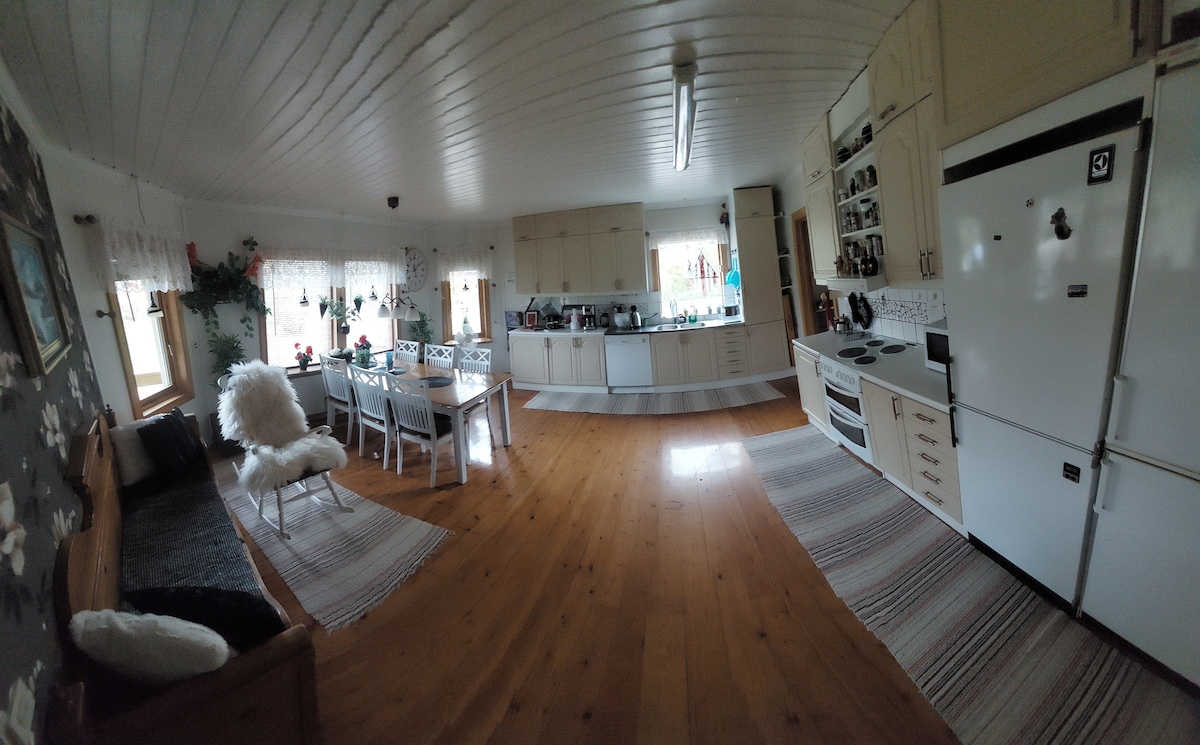 Exclusief huisje gelegen op 8 km ten zuidoosten van Jukkasjärvi/Icehotell aan de stand van de rivier de Torne met zuidwaarts gelegen positie. Autoverkeer is bijna onbestaande, slechts een paar privéhuisjes in de buurt met privéweg / doodlopende wegen. Het huisje is 90 m ² met een loft van 40 m ² en uitgerust voor 6 personen. Er zijn twee slaapkamers met elk twee bedden en een tweepersoonsbed op zolder, keuken, woonkamer, badkamer met douche en toilet. (Blinkende gordijnen in de twee slaapkamers, niet op de loft)