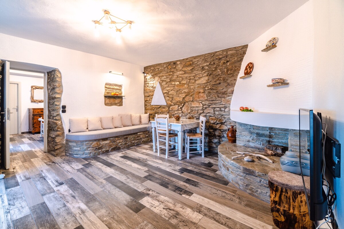 Oktana Traditional House is a charming urban home located in Andros Town, the capital of Andros Island. For centuries, this area has been home to shipowners and seafaring families, reflecting the island's rich maritime history. The house sits within the ancient walls of the old town, on the main pedestrian street, right inside the historic Venetian castle district. Recently renovated, it combines all modern comforts while preserving the character and charm of Andros’ old town.