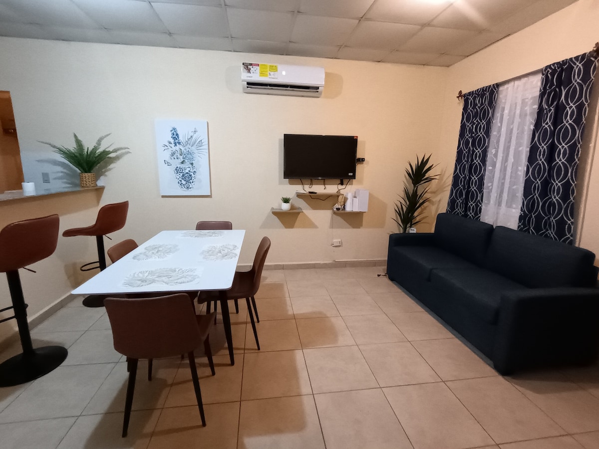 Geniet van de eenvoud van deze rustige en centrale accommodatie voor vier gasten in de omgeving van David. De accommodatie heeft twee platen (1 met queensize bed en een met tweepersoonsbed), een grote badkamer met warm water, goed uitgeruste keuken, woonkamer met kabel-tv, Netflix en Amazon prime, eetkamer, volledige wasserette, airconditioning in de woonkamer en beide kamers. Dicht bij fitnessruimte, supermarkt, restaurants en op slechts vijf minuten van het centrum van David.