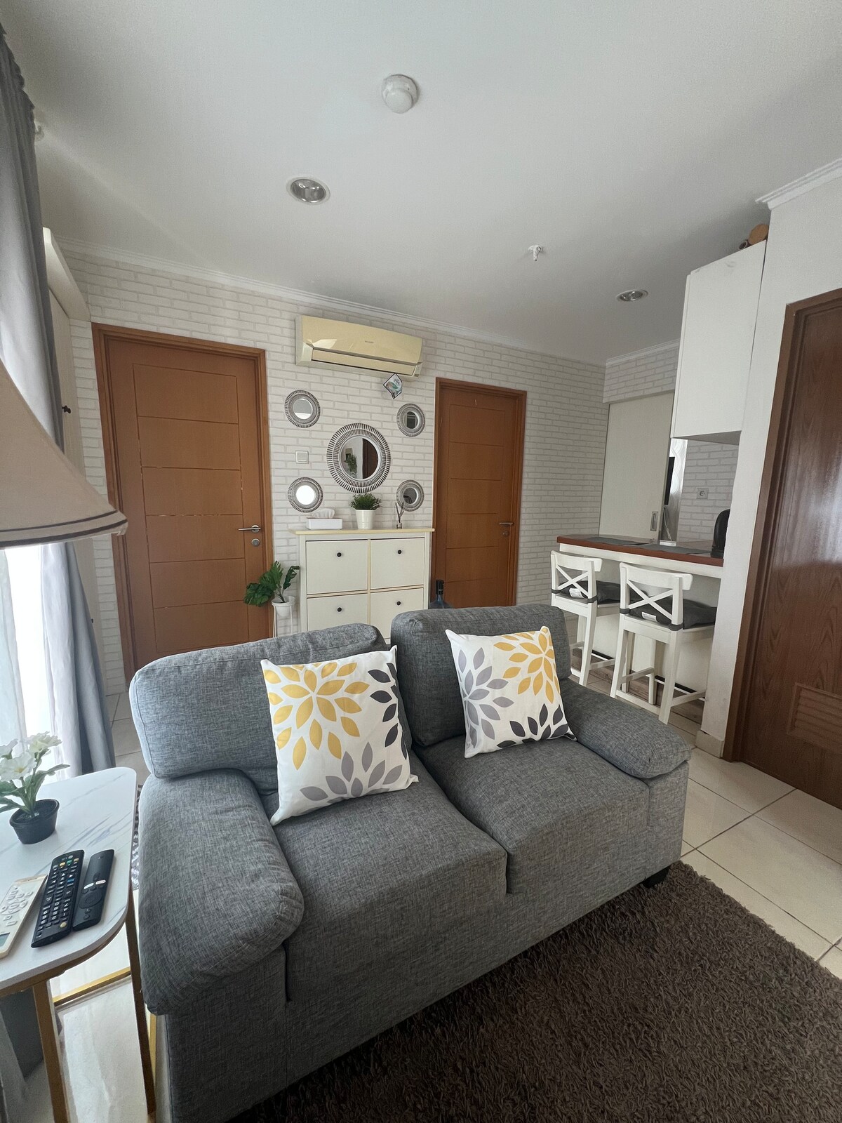 Full furnished 1 BR apartment in South City, Pondok Cabe. Equipped with internet, TV, fridge, microwave, gym, co working space, pool, badminton, jogging track, and nearby to restaurant (Solaria, Bebek Slamet, HokBen, Sushinoya). 15 minutes to MRT Lebak Bulus, 30 mins to Pondok Indah / Chitos, 15 mins to International School (School of Harapan Bangsa and Lab School) and 30 mins to airport. We also have every 1 hour scheduled shuttle to SCBD, Kuningan and Gambir nearby the apartment