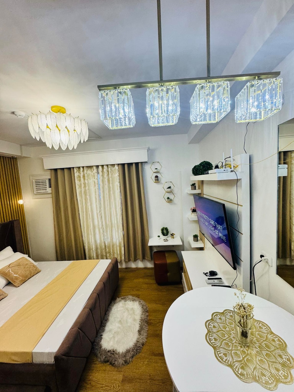 Chic Studio Retreat in het Hart van Davao. Dit stijlvolle studio-appartement biedt de perfecte mix van comfort en modern design. Ideaal voor alleenreizigers of koppels. Geniet van een knus queensize bed, volledig uitgeruste keuken en een ruime woonkamer met natuurlijk licht. Op een steenworp afstand van lokale bezienswaardigheden, trendy cafés en een bruisend nachtleven. Dit chique toevluchtsoord zorgt voor een onvergetelijk verblijf, of het nu voor werk of ontspanning is. Boek nu voor een unieke en handige ervaring in Davao City!