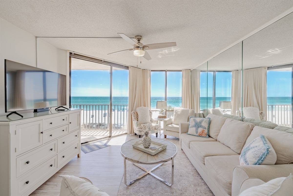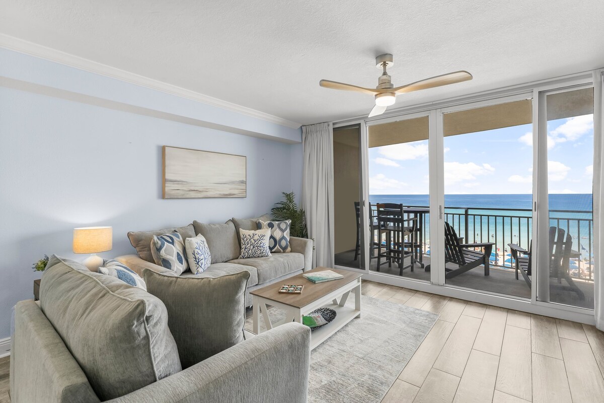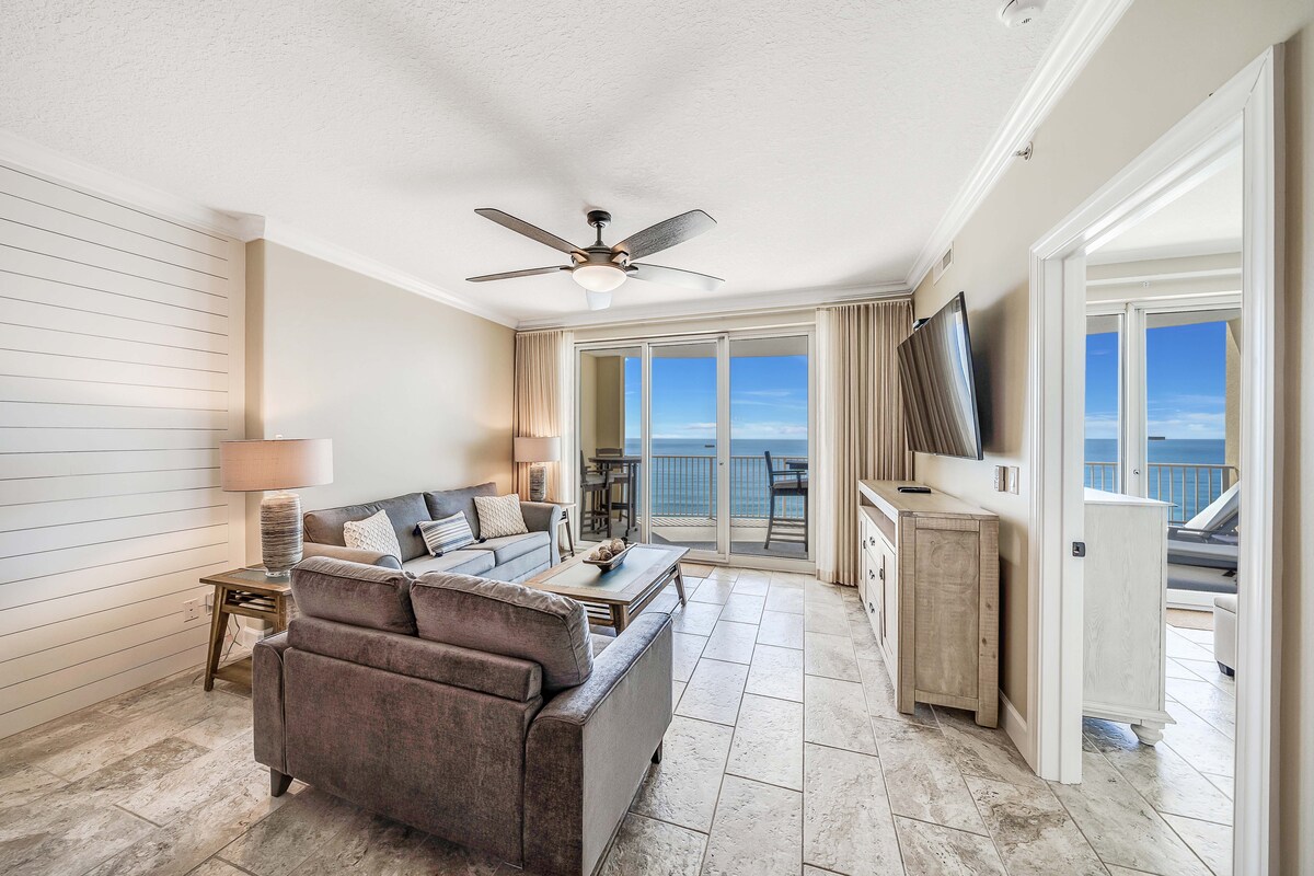 Beach Haven PCB | 1BR/2BA 8e verdieping appartement met episch uitzicht op de Golf! GRATIS strandopstelling (2 stoelen+1 parasol, mrt–okt 2026.) Stel je voor dat je op het balkon loungt, in het zwembad spettert of na zonsondergang aan het grillen bent. Supersnel wifi-systeem, 2 smart-tv's, wasmachine/droger, goed uitgeruste keuken en elektrische grill op het balkon. Bubbelbad, vuurplaats en goede vibes inbegrepen. $ 50 Resortpas (0-1 auto/per verblijf) vereist, $ 100 voor 2 apart betaald. Weekends zijn snel volgeboekt, maar we hebben geweldige weekdagtarieven!