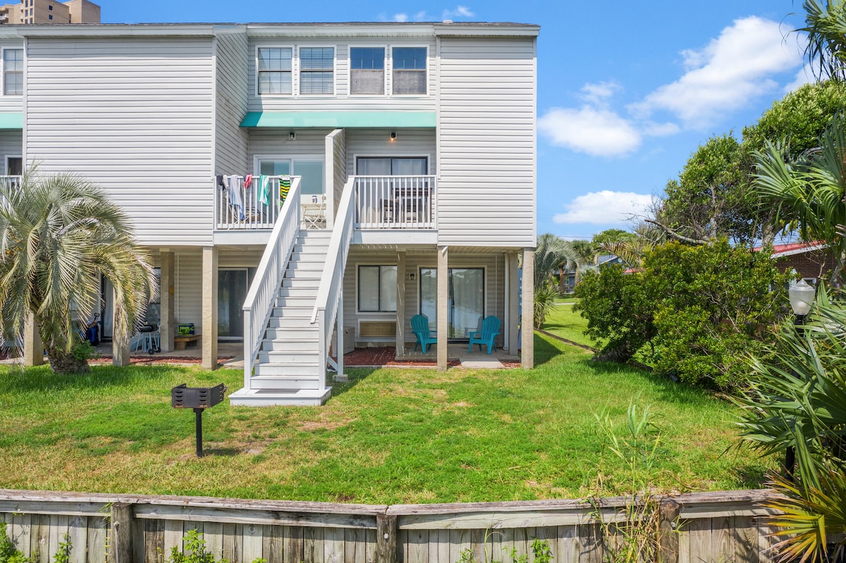 Bijgewerkte studio op de eerste verdieping, met alle comfort en voorzieningen die je nodig hebt voor je bezoek aan het strand. Drink koffie op de veranda aan de achterkant met uitzicht op het meer of maak een wandeling van 3 minuten aan de overkant van de straat naar het strand. Neem een duik in het zwembad. Pier Park ligt op 5 minuten afstand en heeft alles wat je nodig hebt. (Doel, Verse Markt, eindeloos eten en bars). Rosemary ligt op tien minuten rijden. Op vijftien minuten van de luchthaven. Geniet hier met gemak van de beste delen van het strand en de omliggende gebieden.