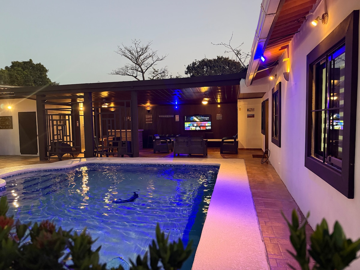 Grote privéwoning op 15 minuten van de stranden, met 5 slaapkamers met airconditioning, 3 badkamers, zwembad, pooltafel, wifi, 2 kabel-tv’s, volledig uitgeruste keuken, 3 ranches, vriezer, barbecue en braadruimte. Perfect voor gezinnen en groepen die op zoek zijn naar comfort en privacy. Parkeermogelijkheid voor 8 auto 's. Strategische ligging, dicht bij supermarkten, winkels, een benzinestation en het winkelcentrum Coronado.