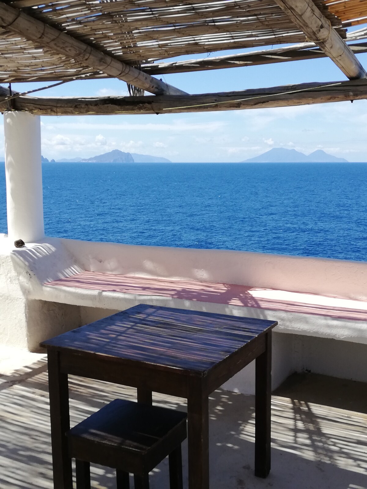 Mooi onafhankelijk huis met uitzicht op zee. De eigenaardigheid is het terras dat een prachtig uitzicht biedt op de eindeloze zee en alle Eolische eilanden. Het is of je in een schip zit. Gelegen in het hart van het dorp op slechts enkele minuten van de strandklif. Bestaande uit twee slaapkamers met individuele toegang en een balkon met uitzicht over de vulkaan. Geweldig voor twee kopieën van vrienden, gezinnen of twee met hun eigen privékamer. De badkamer is gelegen op het terras en is alleen voor exclusief gebruik.
