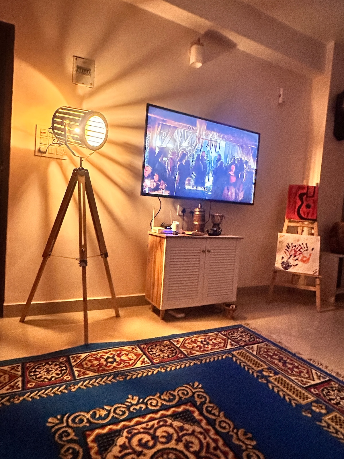Welcome to our cozy and thoughtfully designed 3-room apartment, perfect for families, groups, or remote workers! Each bedroom features a comfortable queen bed, ceiling fan, wardrobe with locker, and its own unique vibe Room 1: Entertainment room with TV Room 2: The only room with AC workspace & story books Room 3: Recreational space to relax or stretch Enjoy a functional kitchen, high-speed WiFi, a common area with both Indian & western toilets, separate bathroom with geyser, and free parking!